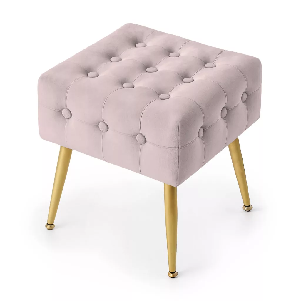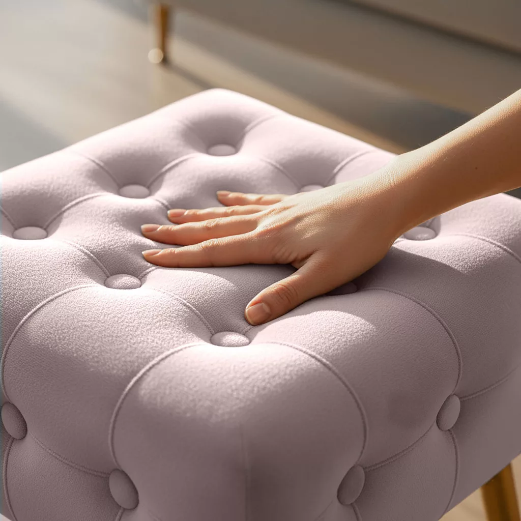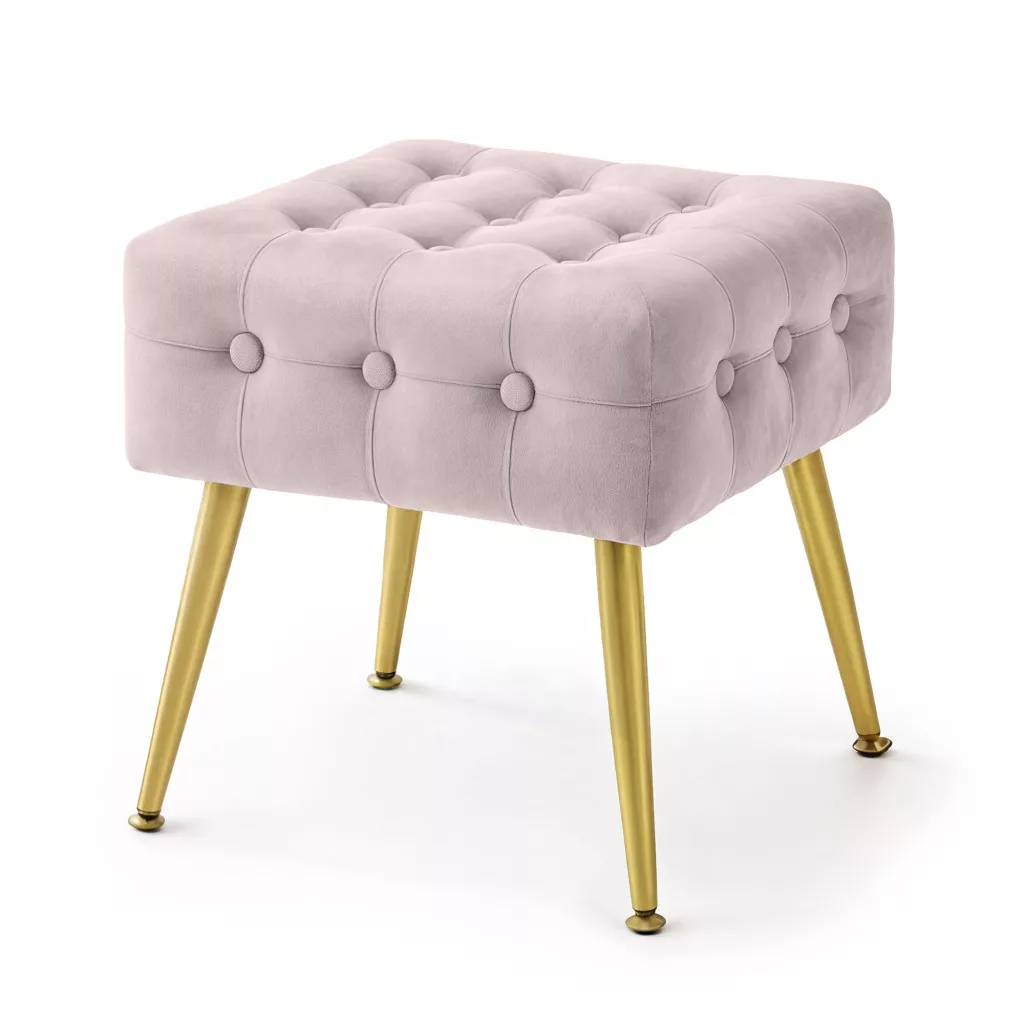 AKORD QUADRA Tapicerowana Pufa Welur Pudrowy Róż Pikowana Złote Nogi