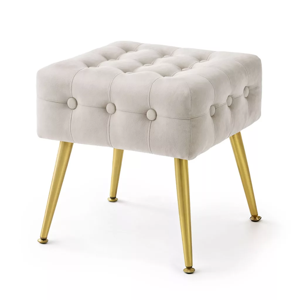 AKORD QUADRA Pufa Tapicerowana Welur Bézs Arany Lábakkal