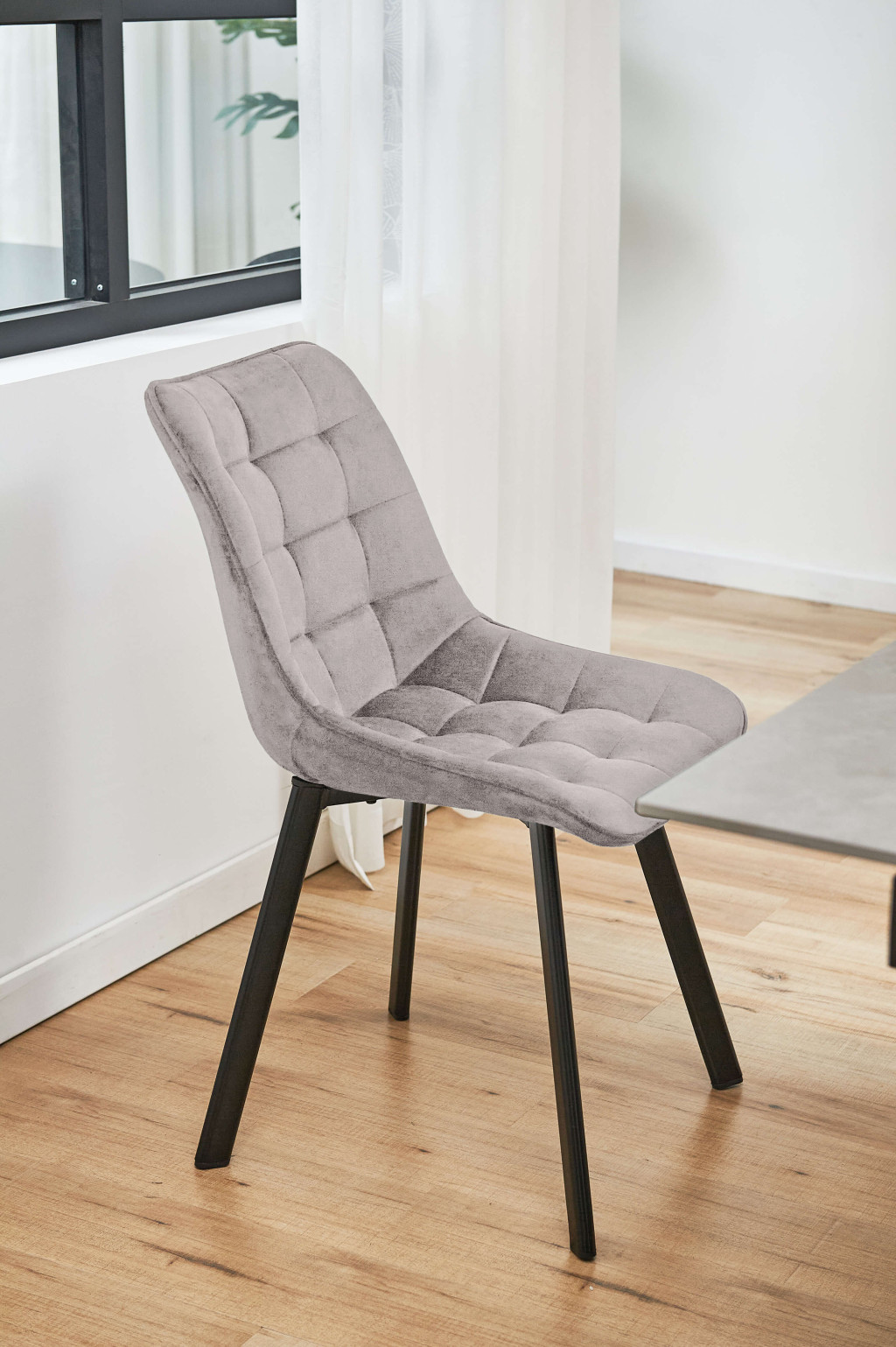Elegáns, steppelt kialakítású velúr étkezőszék fekete fém lábakkal, amely tökéletes választás modern és klasszikus enteriőrökbe egyaránt.