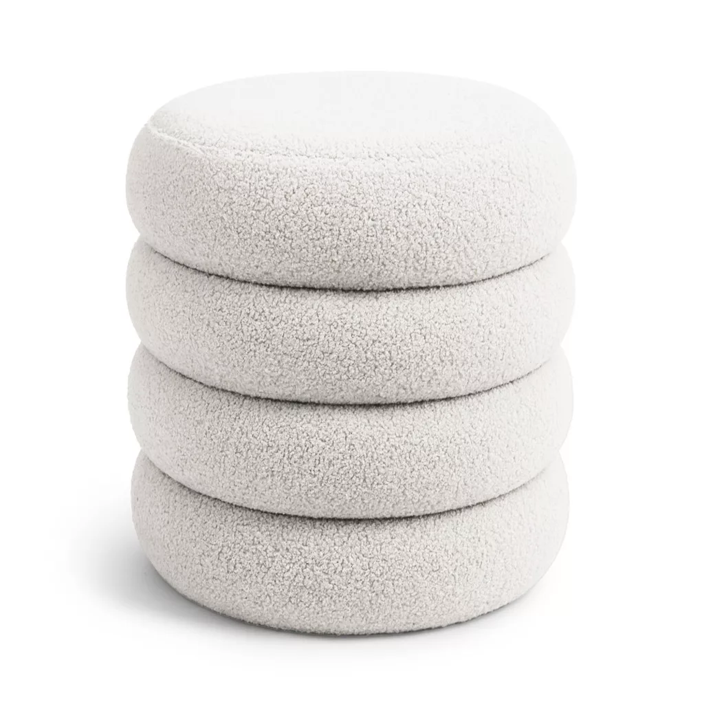 A SNUGGO nyitható puff lenyűgöző, hengeres formájával és puha teddy anyagával azonnal magára vonja a figyelmet. Kompakt mérete miatt bármely helyiségbe könnyen beilleszthető, miközben praktikus tárolási lehetőséget kínál az ülőfelület alatt elrejtett rekesszel. A mglista biel színű teddy anyag kellemes tapintású, meleg hangulatot teremt, és tökéletesen illeszkedik a modern soft glam vagy organic modern stílusú berendezésekhez. Ez a puff nemcsak ülőbútorként szolgál, hanem stílusos kiegészítőként is funkcionál.