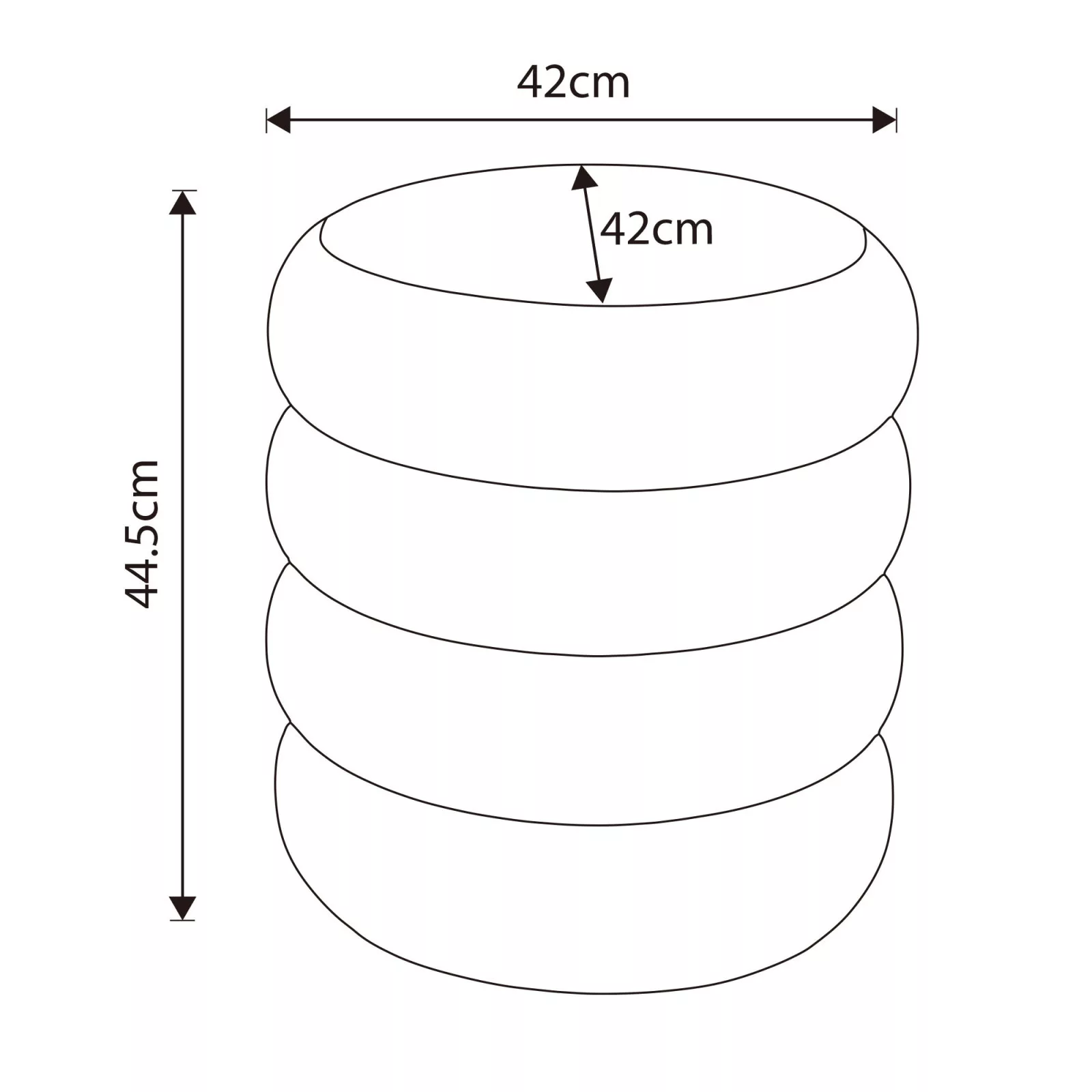 A SNUGGO ülőpuff egyedi, hullámzó hengeres formájával azonnal magára vonja a figyelmet. A puha, fényes bársony kárpit luxus megjelenést kölcsönöz, amely tökéletesen illeszkedik a modern soft glam és organic modern stílusokhoz. A 42 cm átmérőjű, kerek forma kompakt méretének köszönhetően bárhol elhelyezhető - a nappaliban, hálószobában vagy akár az előszobában is.