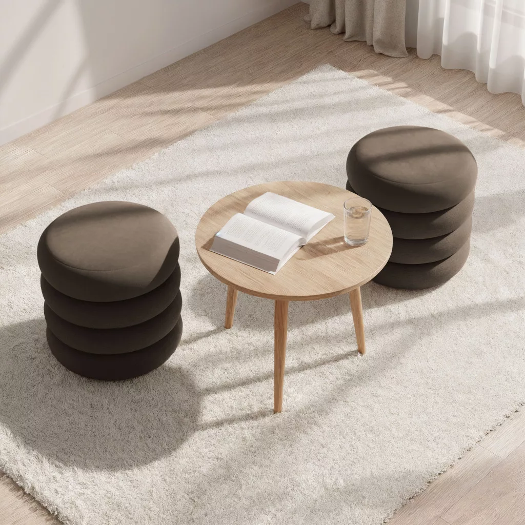 A SNUGGO ülőpuff lenyűgöző, hullámzó formájával azonnal magára vonja a figyelmet minden helyiségben. Az egyedi, rétegzett cylindrikus dizájn nemcsak látványos, de rendkívül kényelmes ülőfelületet is biztosít. A puha welur kárpit kellemes tapintású és elegáns megjelenésű, amely tökéletesen illeszkedik a modern soft glam és organic modern stílusokhoz. A 42 cm átmérőjű, kompakt méret lehetővé teszi, hogy akár kisebb helyiségekben is könnyedén elhelyezhető legyen.