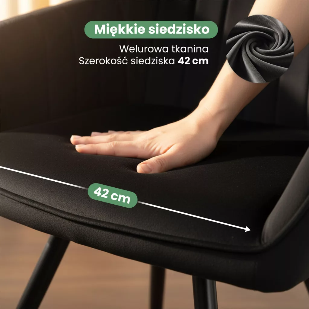 A fekete acél lábak stabil alapot adnak, miközben a szék modern, indusztriális vagy mid-century modern stílusú belső terekbe is tökéletesen illeszkedik. A TURNO szék ideális választás étkezőbe, nappali sarokba vagy akár home office környezetbe is. A 4 darabos szett komplett megoldást kínál azok számára, akik egységes, stílusos berendezést szeretnének otthonukba. A welúr anyag puha tapintása és a gondosan kidolgozott részletek garantálják a tartós minőséget és a mindennapi használat élvezetét.