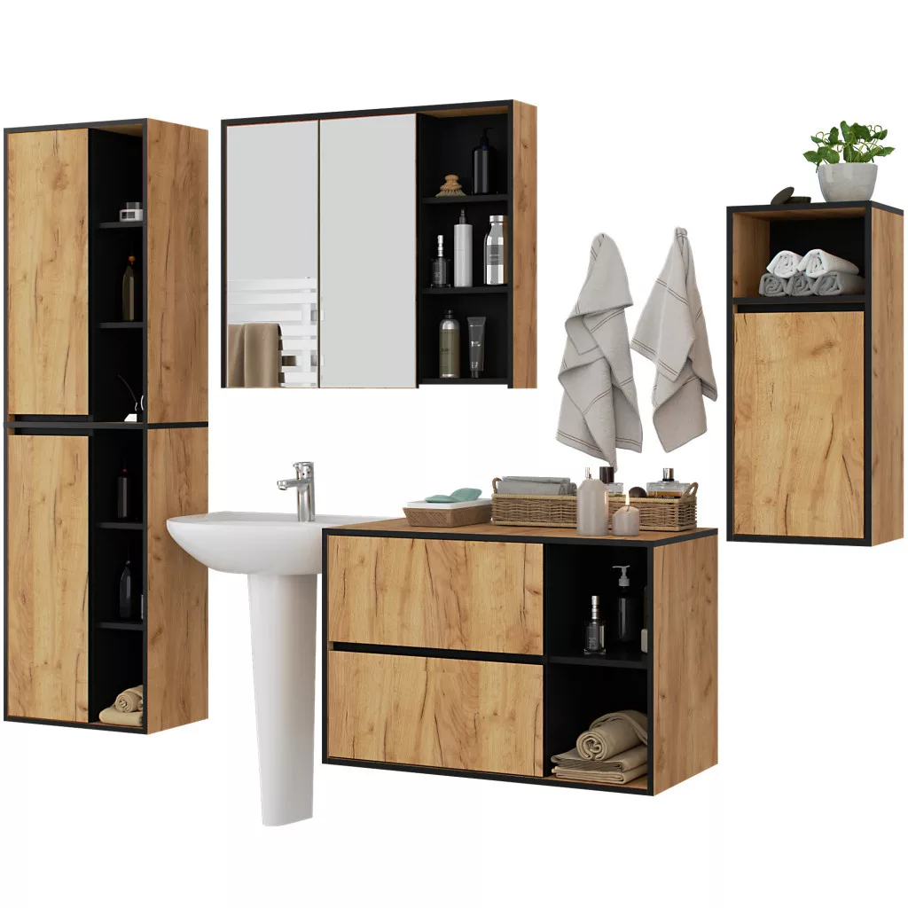 AKORD VAMI Fali Fürdőszobabútor Szett Craft Tölgy-Fekete