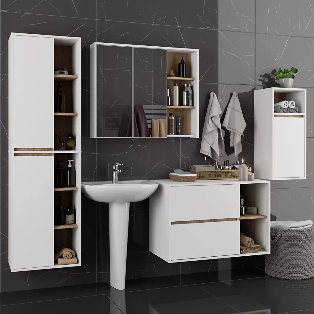 AKORD VAMI Fali Fürdőszobabútor Szett Fehér/Sonoma Tölgy
