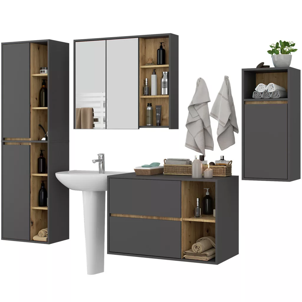 AKORD VAMI Fali Fürdőszobabútor Szett Grafit Szürke / Artisan Tölgy