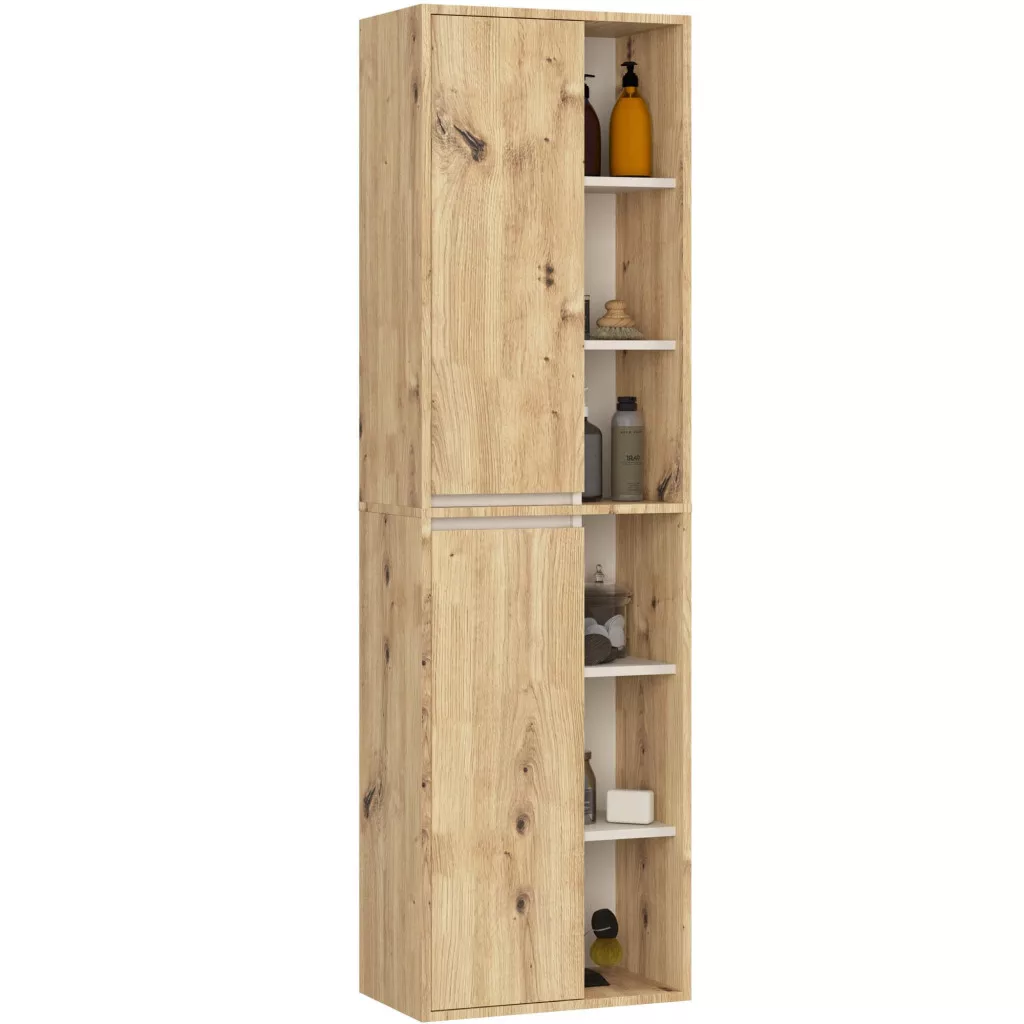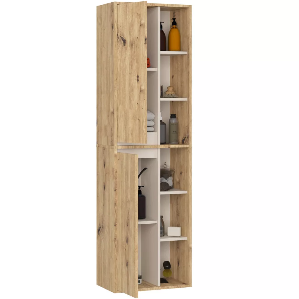Praktikus, magas fürdőszobai szekrény 2 ajtóval és 10 polccal, amely maximális tárolási megoldást kínál 170 cm magasságban.