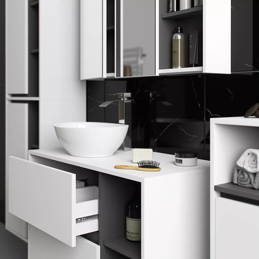 Elegáns és praktikus tárolási megoldás a modern fürdőszobába