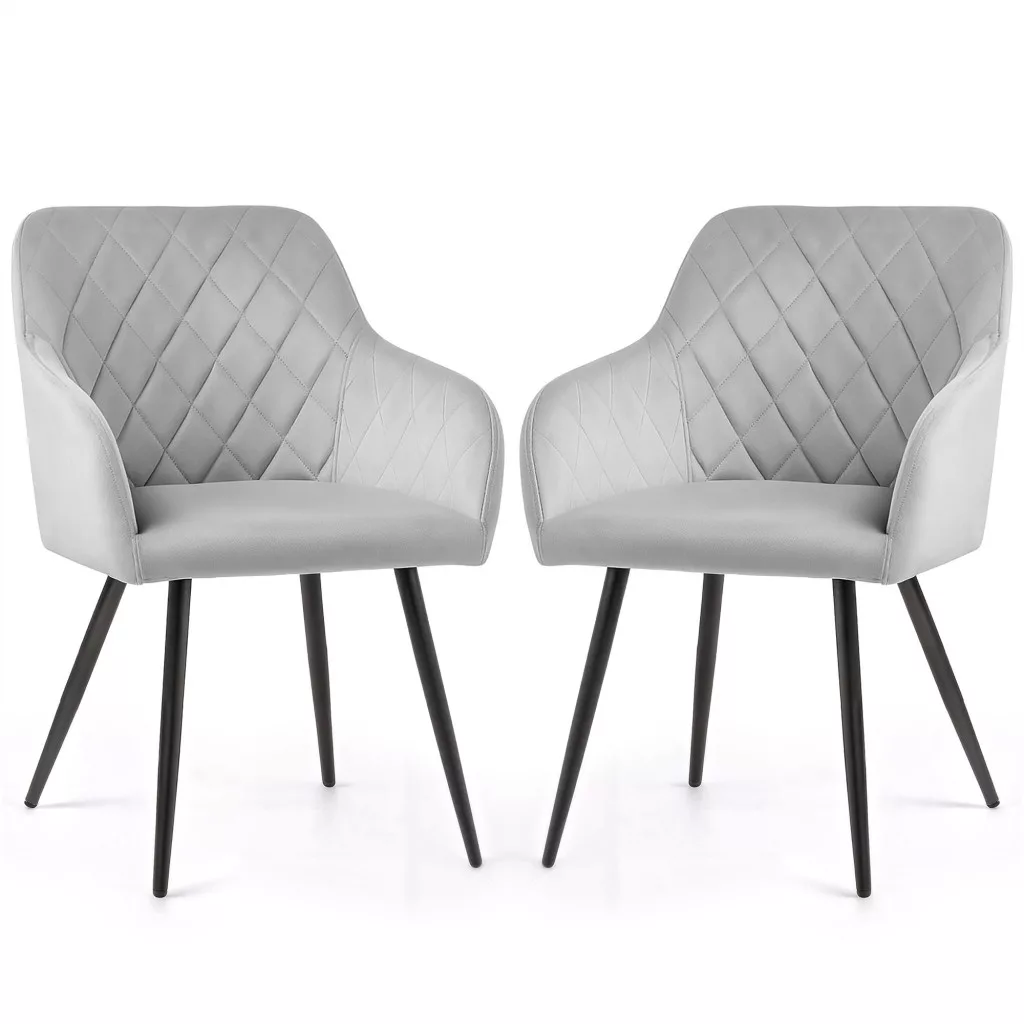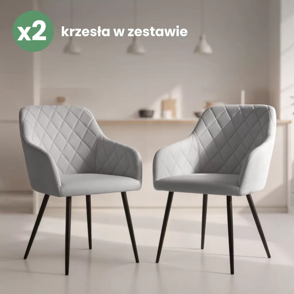 AKORD VELTO Kárpitozott Szék Welur Szürke Rombusz Steppelt Fekete Lábak 2 db