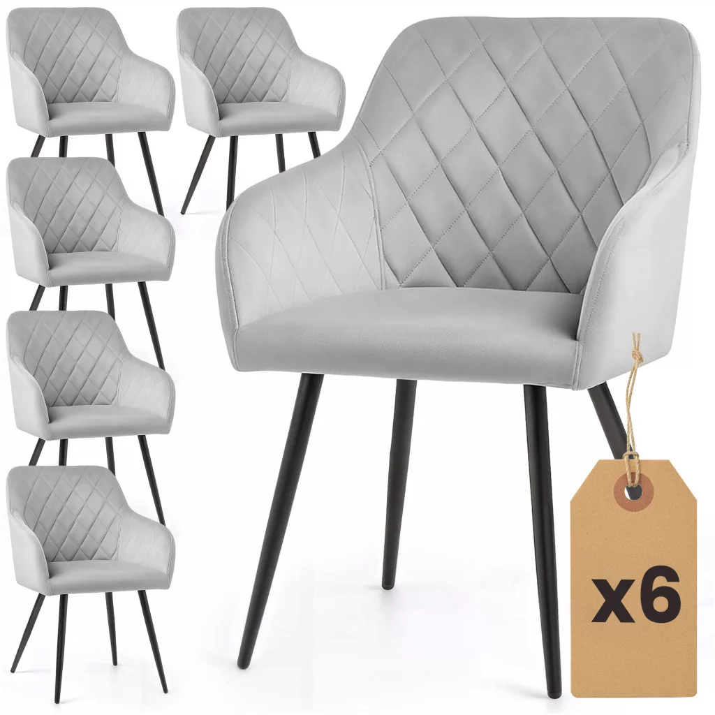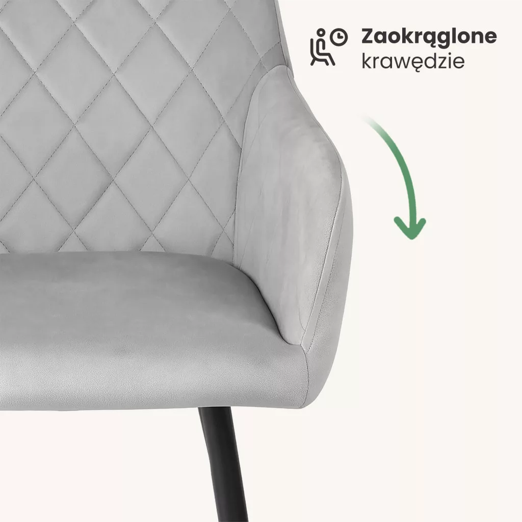 AKORD VELTO Tapicerowane Krzesło Welur Szary Pikowane Czarne Nogi 6 db