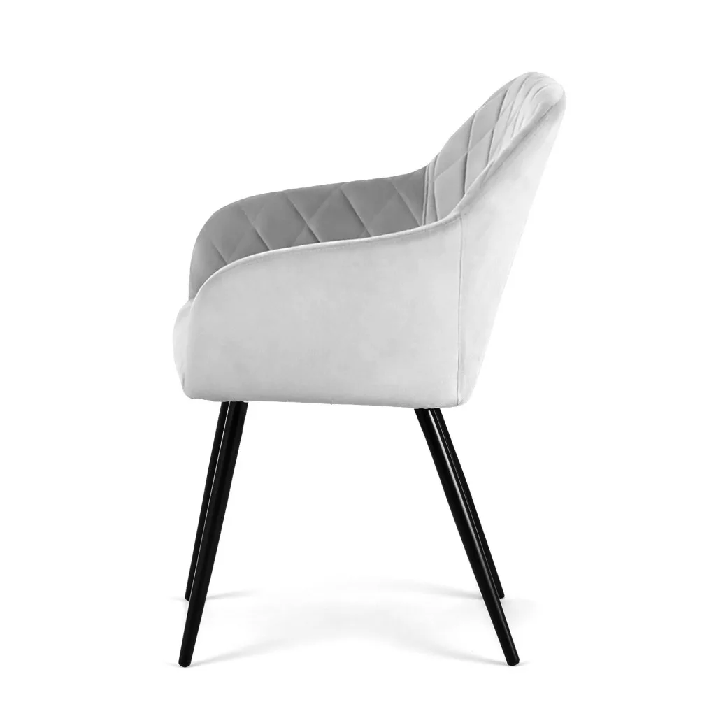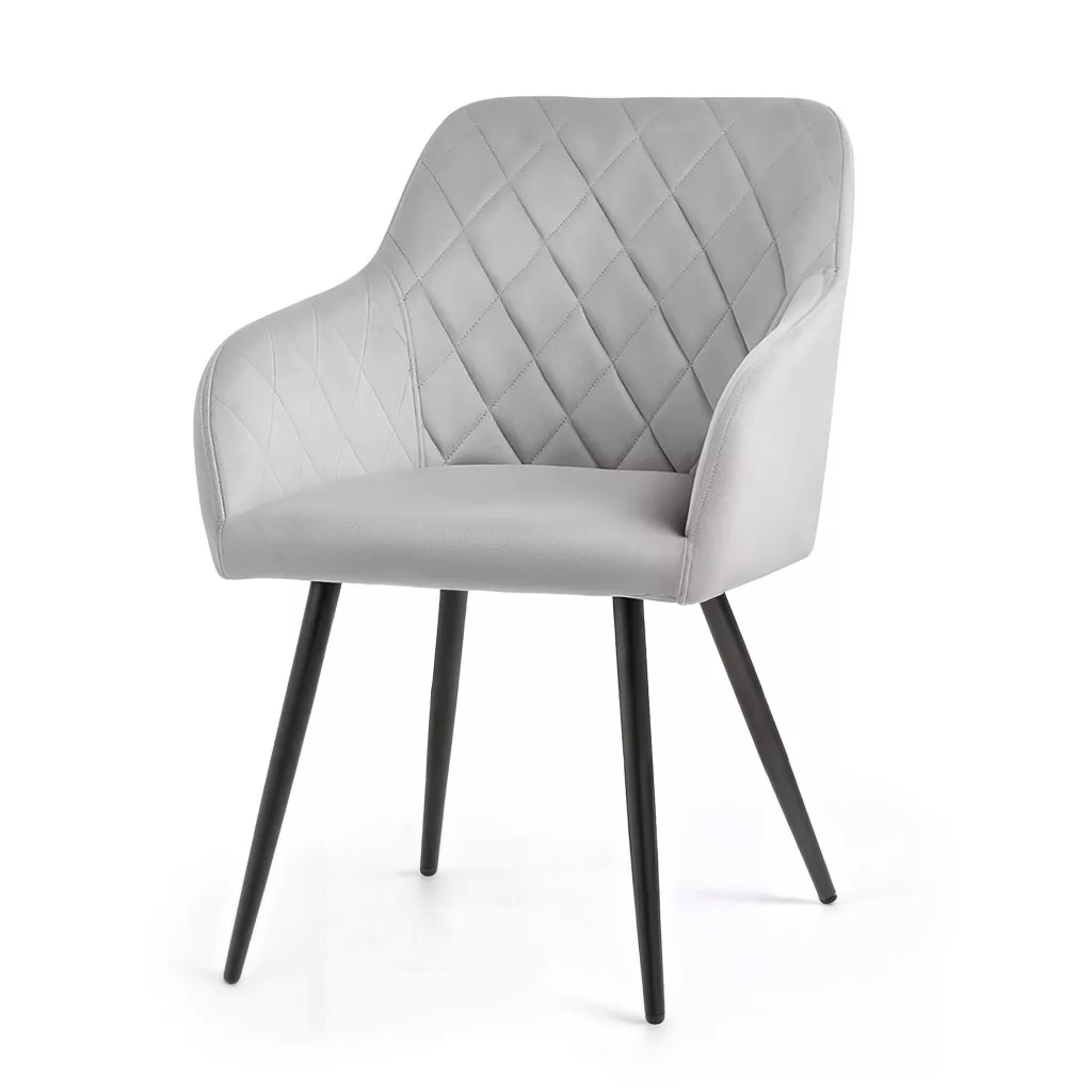 Elegáns, rombusz mintával steppelt welúr székek modern és klasszikus enteriőrökbe. A puha tapéta és a stabil fém lábak tökéletes kombinációja a kényelemnek és a stílusnak.