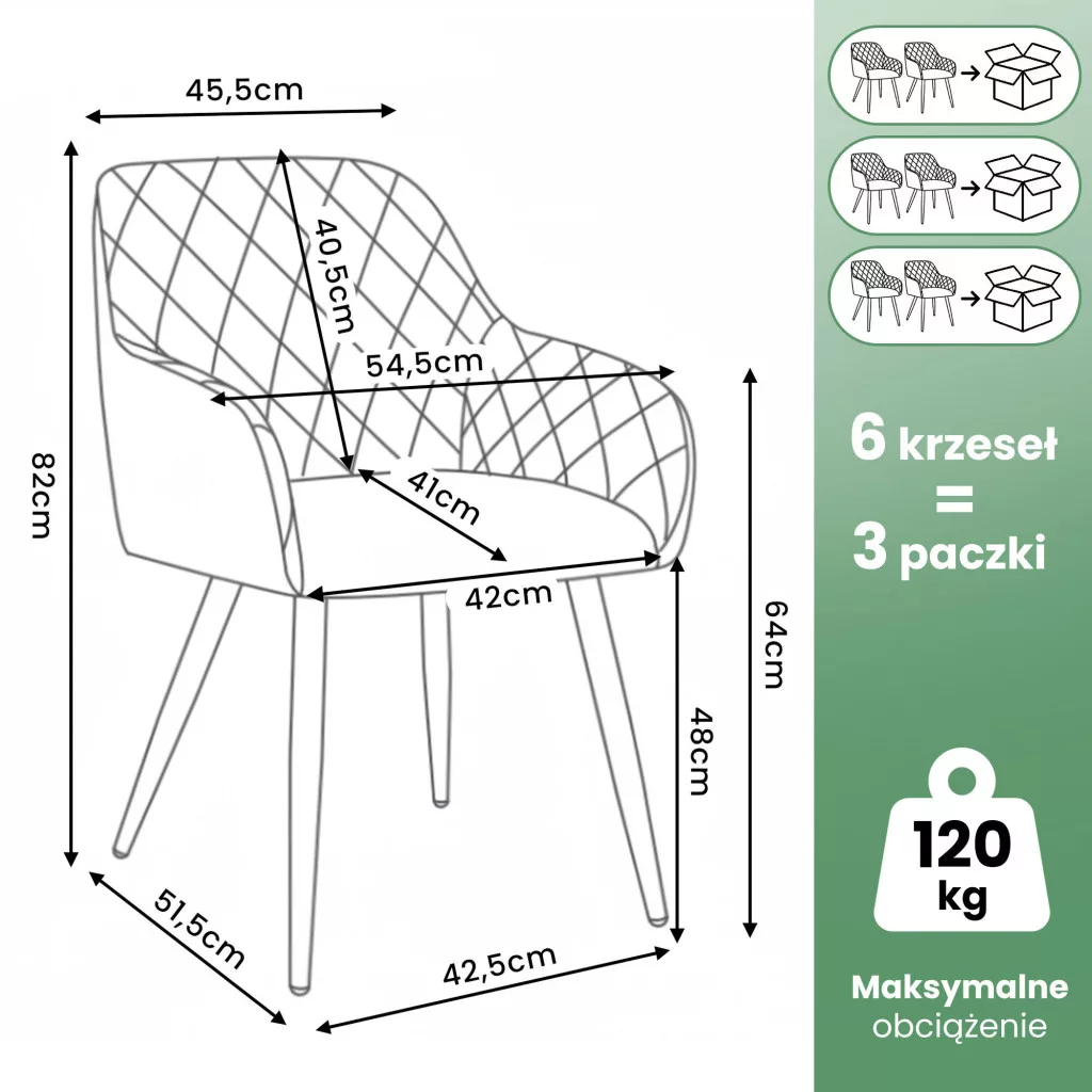 A VELTO modern székek egyszerű, mégis elegáns megjelenésükkel hódítanak. A kellemes tapintású welúr kárpitnak köszönhetően a széken ülés igazi élvezet! A rombusz mintával steppelt szövet esztétikai értéket ad a terméknek, míg a fekete színű fém lábak tökéletesen kiegészítik az összképet. Ez a 6 db-os székszett kiválóan illeszkedik modern belső terekbe, hangsúlyozva azok eleganciát és stílusát.