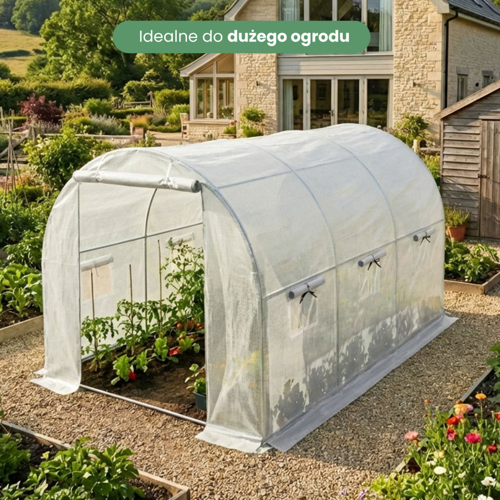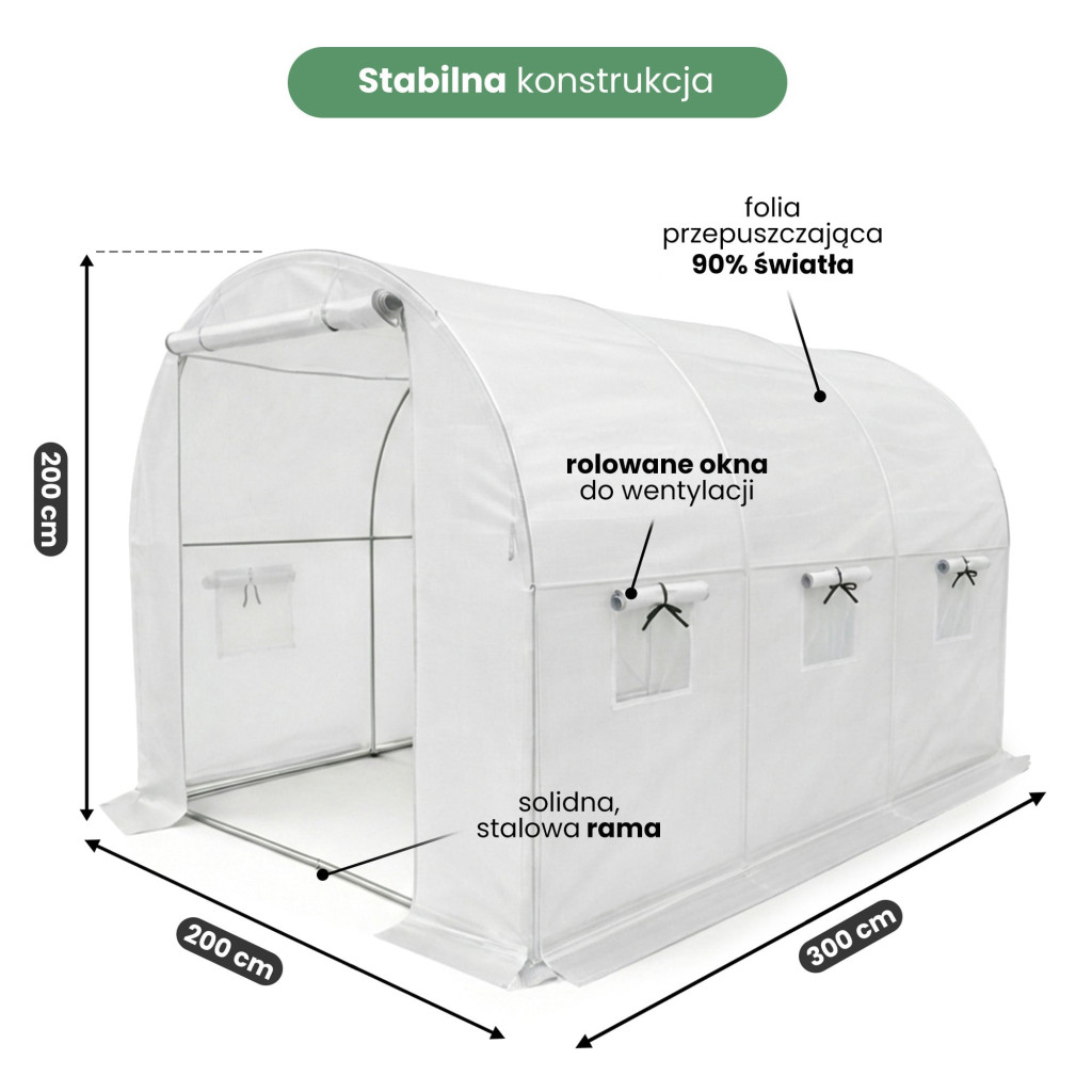 AKORD fóliasátor üvegház tunel fehér 200x300x200 cm 1 ajtó 6 ablak UV szűrő