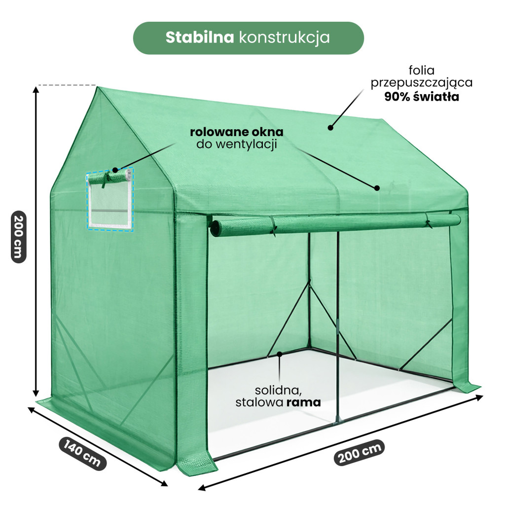• Kényelmes munkavégzés - 2 méteres belmagasság még magasabb növényekhez is