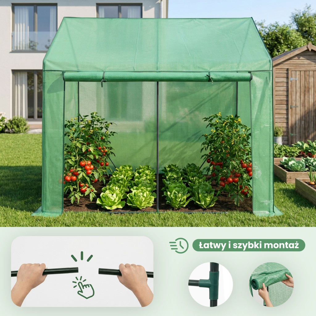 AKORD kerti fóliasátor üvegház 1 ajtóval 2 ablakkal zöld 200x140x200 cm