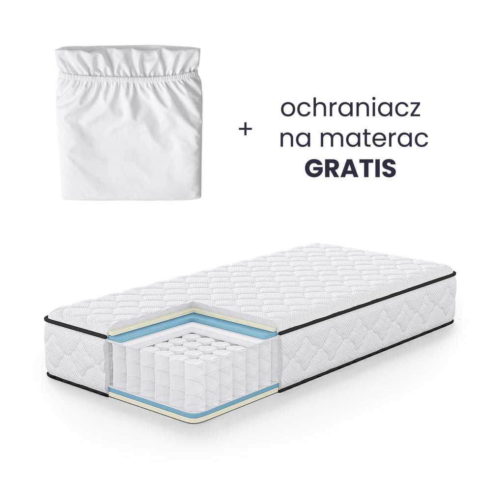 Az AKORD 90x190 cm-es rugós matrac tökéletes választás kisebb egyágyas hálószobákba. A 24 cm magas matrac közepes keménységű (H3) felülete kiválóan alkalmazkodik a test kontúrjaihoz, miközben megfelelő támasztást nyújt a gerinc számára. A 7 zónás rugórendszer biztosítja a test különböző részeinek optimális alátámasztását, így garantálva a pihentető alvást.