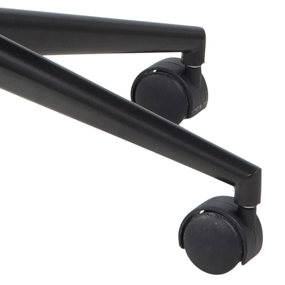 Az Actona Winslow irodai szék a dán design és funkcionalitás tökéletes példája. A fekete műbőr borítás és a vízszintes steppeléssel díszített háttámla és ülőfelület elegáns megjelenést kölcsönöz. A karfák és az ötágú görgős talp matt fekete kivitelben készültek, harmonikusan illeszkedve az összképhez. A szék forgó mechanizmusa és magasságállítási lehetősége biztosítja a megfelelő munkapozíciót.