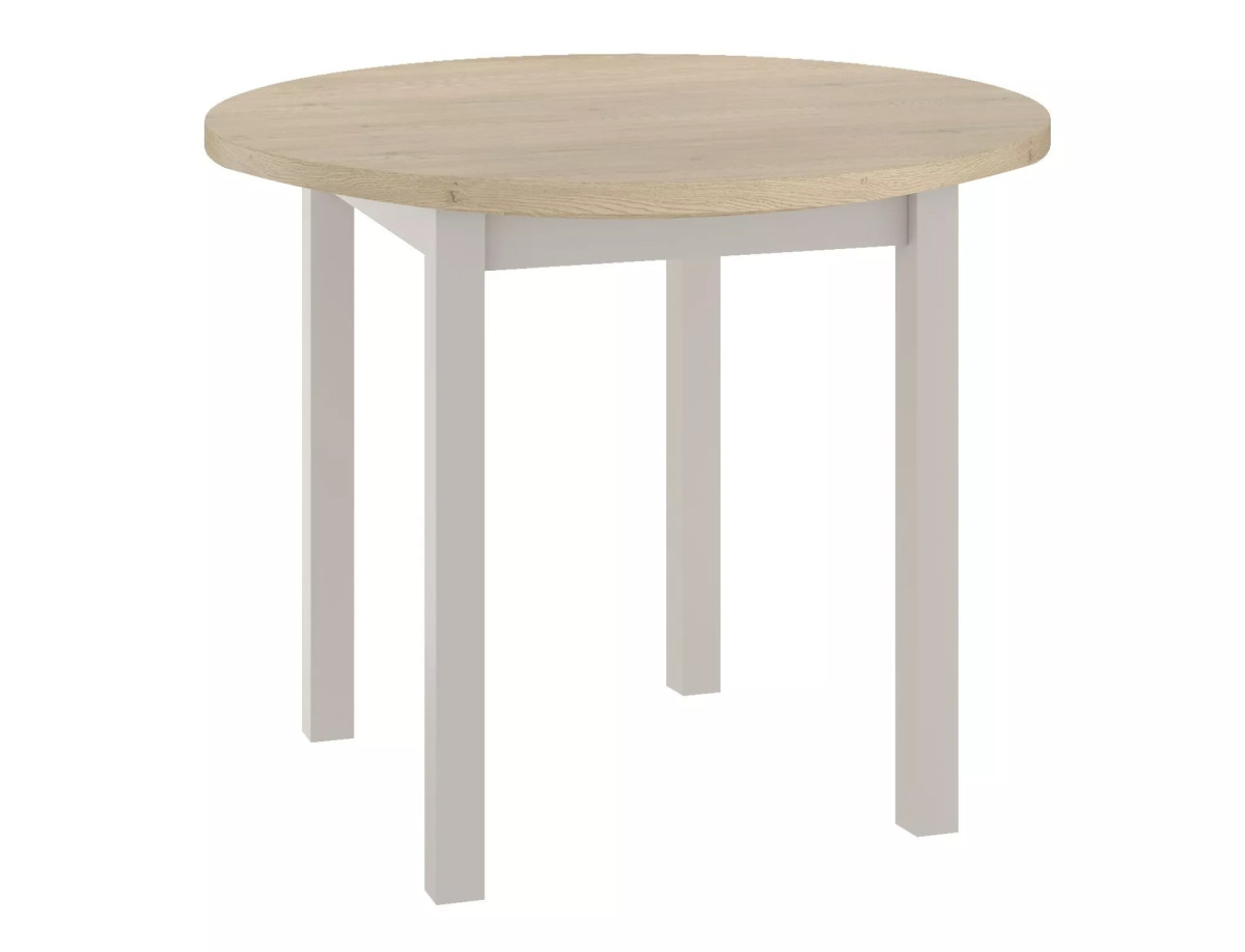 Elegáns kerek étkezőasztal 4 személyes, tölgy cremona torro asztallappal és kasmír színű MDF vázzal. Tökéletes választás kisebb étkező terekbe.