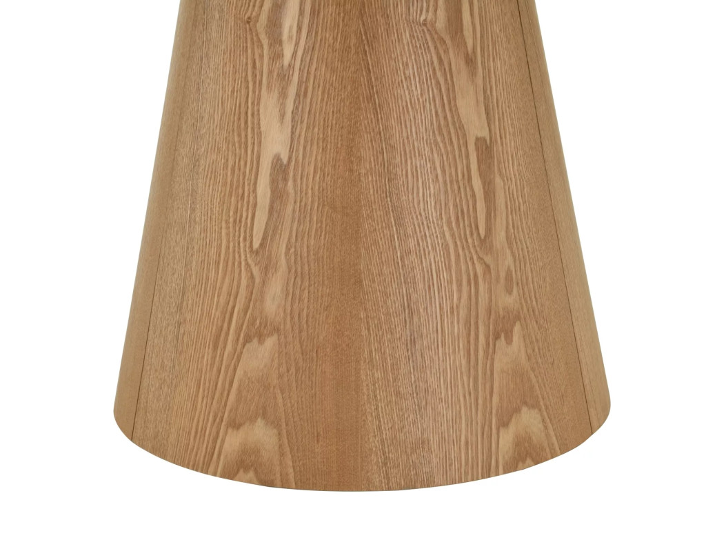 Az Angel étkezőasztal a modern dizájn és a klasszikus anyaghasználat tökéletes ötvözete. A 120 cm átmérőjű kerek asztallap természetes tölgy furnérja meleg, otthonos hangulatot teremt, míg a kúpos formájú láb stabil alapot biztosít.