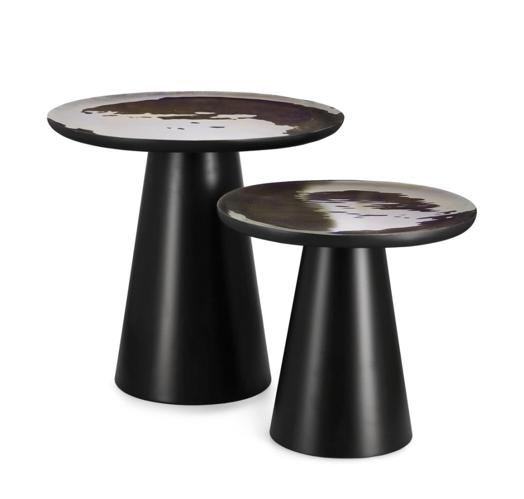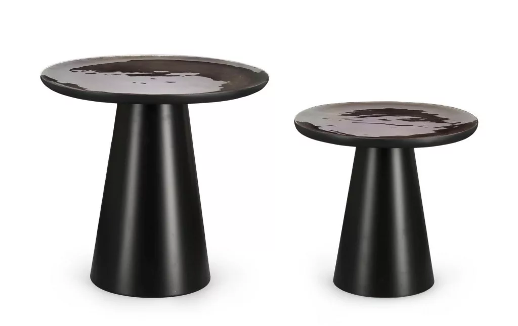 A két különböző méretű asztal rugalmasan variálható - használhatók együtt vagy külön-külön is. A kúpos láb design modern megjelenést kölcsönöz, miközben stabil alapot biztosít. Az asztalok tökéletesen illeszkednek modern, industrial vagy loft stílusú enteriőrökbe.