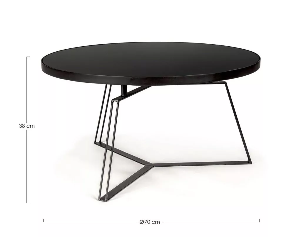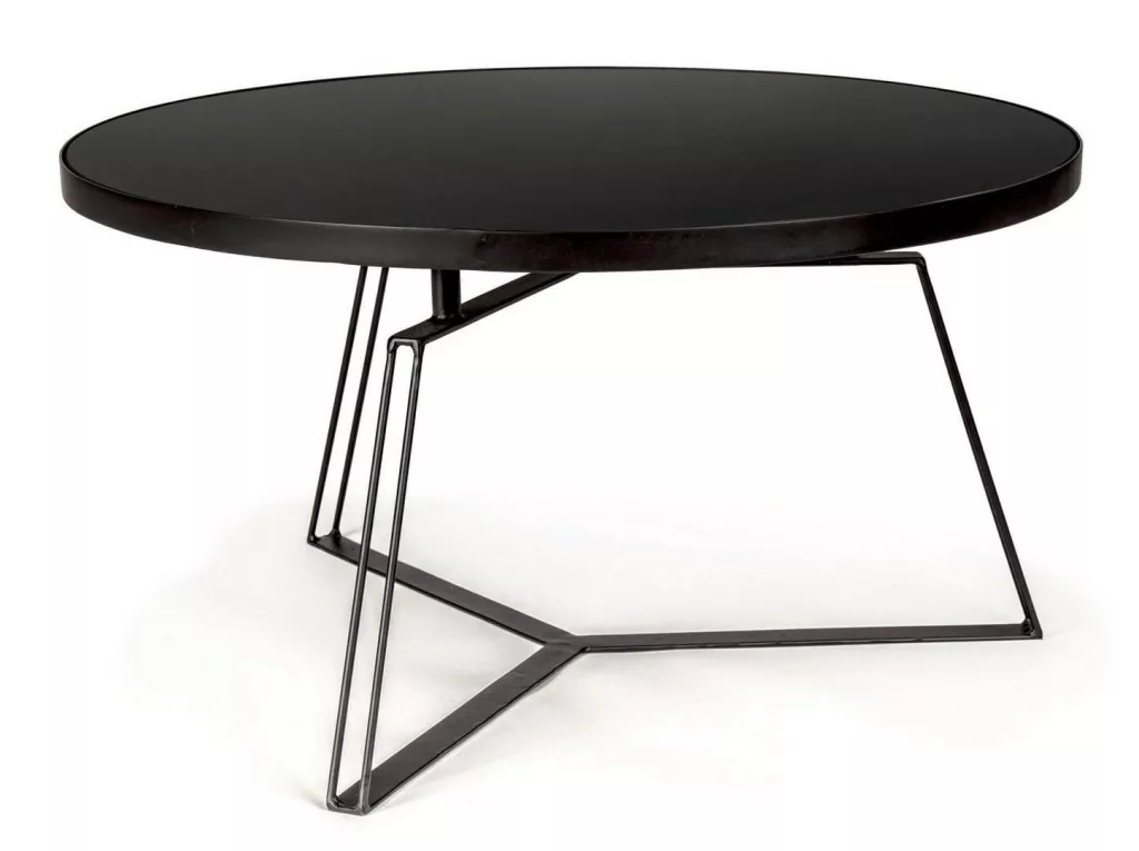 Modern és elegáns dohányzóasztal fekete acél vázzal és üveg asztallappal, amely tökéletes választás a kortárs lakberendezéshez.