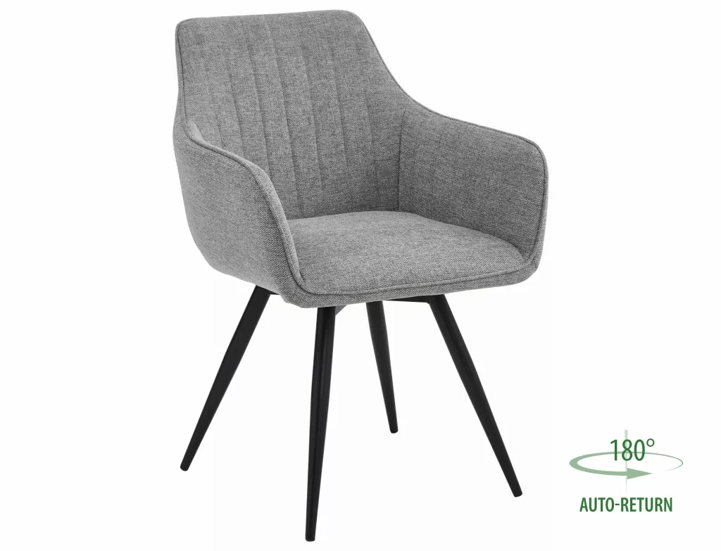 A Ballo Brego étkezőszék tökéletes választás azoknak, akik a modern design és a funkcionalitás harmonikus ötvözetét keresik. A szék elegáns, barázdált kárpitozása és karfás kialakítása nem csak esztétikus megjelenést, de kiváló üléskényelmet is biztosít. A 180 fokos forgási lehetőség és az automatikus visszatérési funkció praktikus használatot garantál.