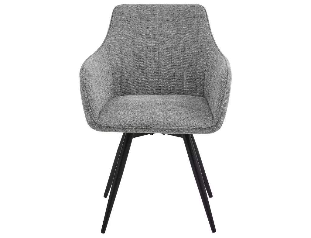 A matt fekete fém váz stabil alapot biztosít, míg a szürke Brego szövetkárpit időtálló eleganciát kölcsönöz a széknek. A karfás kialakítás extra kényelmet nyújt, így hosszabb étkezések során is kényelmes ülést biztosít.
