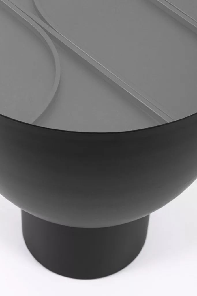 Az Archie dohányzóasztal a kifinomult design és praktikum tökéletes ötvözete. A matt fekete felület és a kerek forma harmonikus egységet alkot, míg az edzett üveg asztallap különleges mintázata művészi jelleget kölcsönöz a bútornak. A robusztus acél váz nem csak stabilitást biztosít, de hosszú élettartamot is garantál.