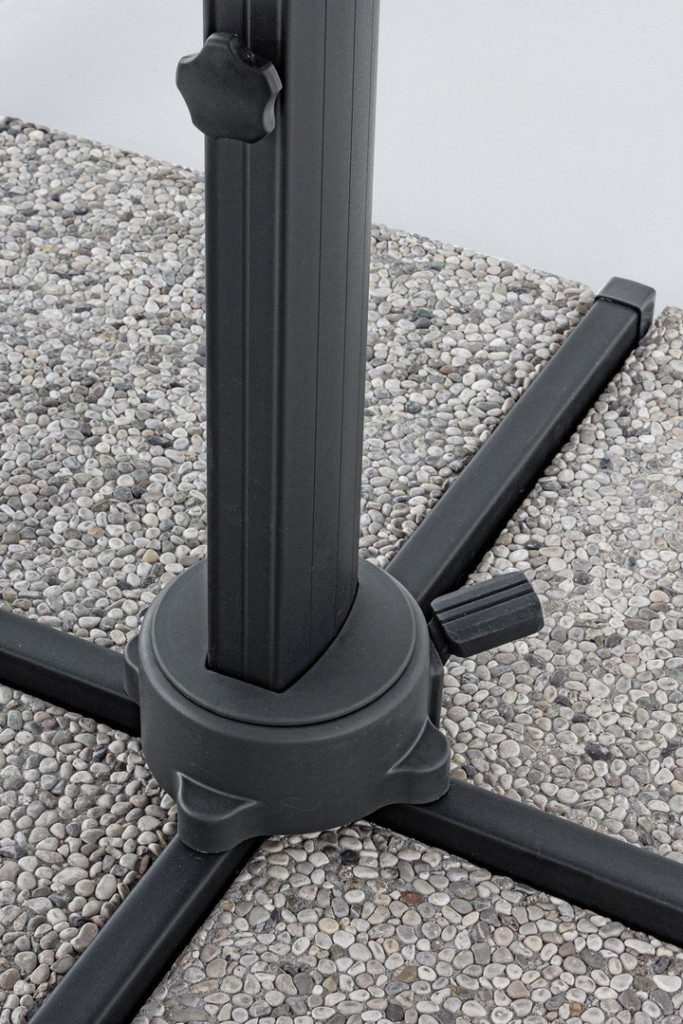 A napernyő különlegessége a mellékelt éjszakai védőhuzat és a LED világítással valamint hangszóróval való bővíthetőség. Az acél kereszttalp alapfelszereltség, mely kiegészíthető cement nehezékkel a még stabilabb rögzítéshez.