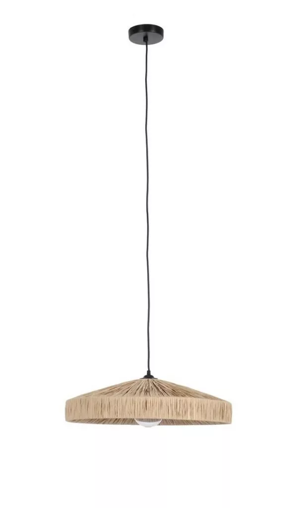 A Bizzotto Kanda függőlámpa tökéletesen ötvözi a természetes anyagok szépségét a modern formatervezéssel. A rafiából kézzel font lámpaernyő finom, bézs árnyalata és organikus textúrája kellemes, meleg fényt szór a térben, miközben dekoratív látványelemként is szolgál.