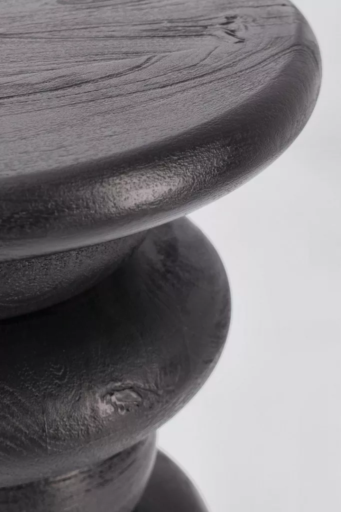 A Bizzotto Lopez 40 dohányzóasztal lenyűgöző példája annak, hogyan válhat egy bútor egyszerre művészi alkotássá és praktikus használati tárggyá. A geometrikus, egymásra halmozott korongok formája egyedi vizuális élményt nyújt, amely azonnal magára vonja a tekintetet bármely helyiségben. A masszív mangófa természetes textúrája és a fekete nitrocellulóz bevonat tökéletes harmóniát teremt, kiemelve a fa eredeti szépségét, miközben modern, urbánus karaktert kölcsönöz a bútoroknak.