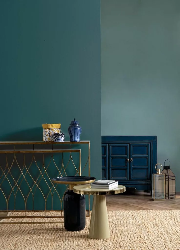A bútor különlegességét a részletekben rejlő finomság adja: az arany színű szegély és a dekoratív gyűrű elegáns kontrasztot képez a kék felülettel. Az asztal nem csupán praktikus bútordarab, hanem művészi alkotás is egyben, amely képes átformálni bármely helyiség hangulatát.