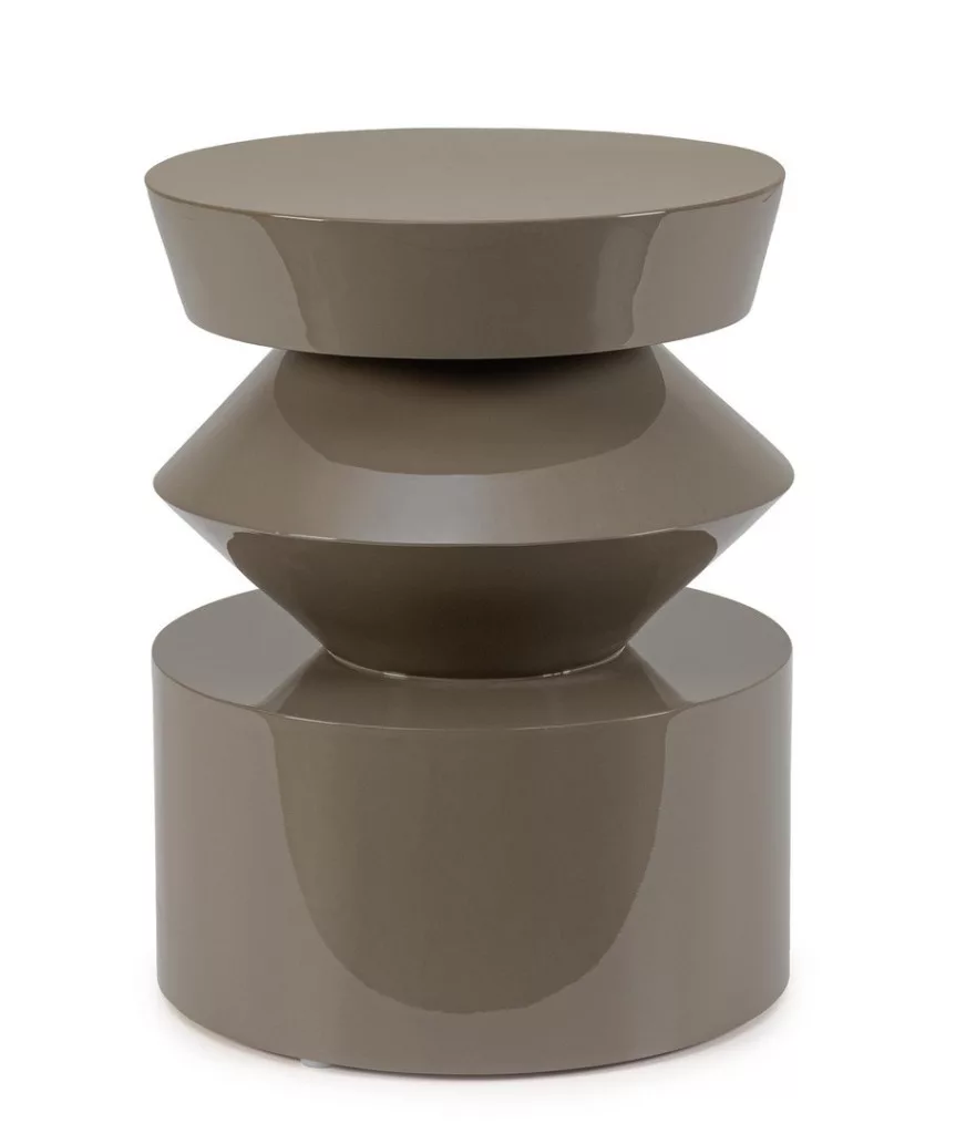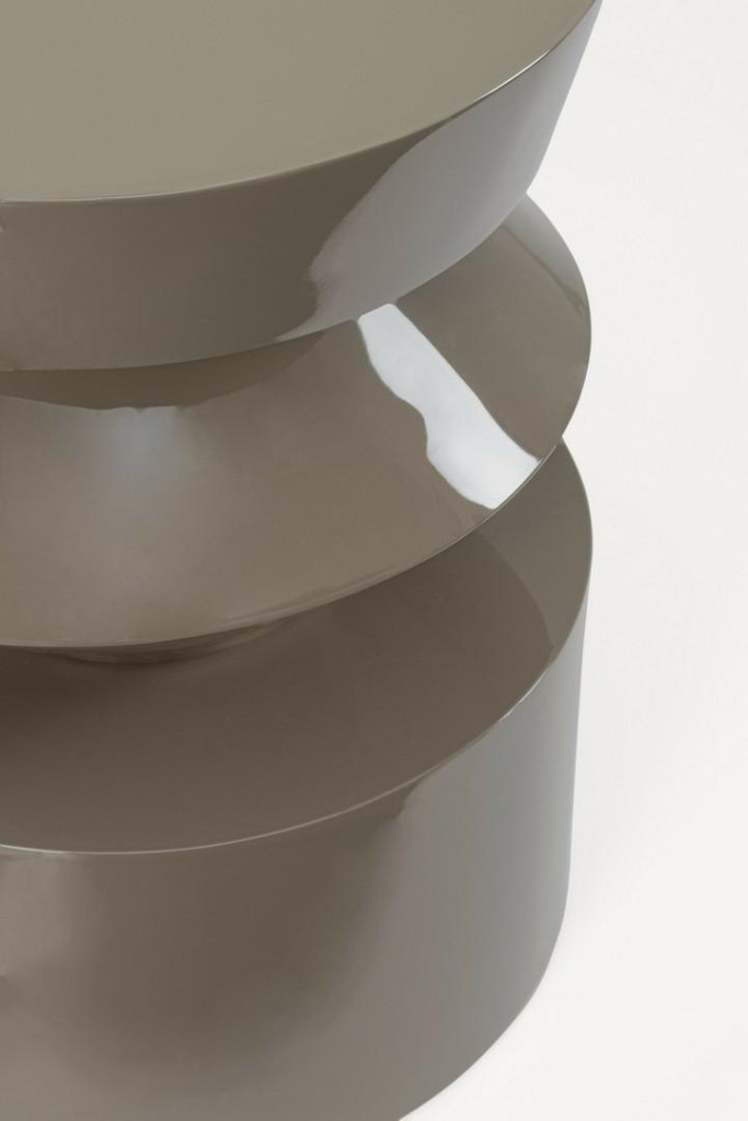 A Bizzotto Otilia Contour stolik kawowy egyedi, geometrikus formájával azonnal magára vonja a figyelmet minden lakótérben. A három egymásra épülő, eltérő formájú szegmens - a felső kerek lap, a középső homorú elem és az alsó hengeres alap - harmonikus egységet alkot, amely egyszerre művészi alkotás és praktikus bútor. A fényes, lakkozott felület gyönyörűen tükrözi a fényt, vizuálisan gazdagítva a teret, miközben a brązowy árnyalat melegséget és kifinomult eleganciát áraszt.