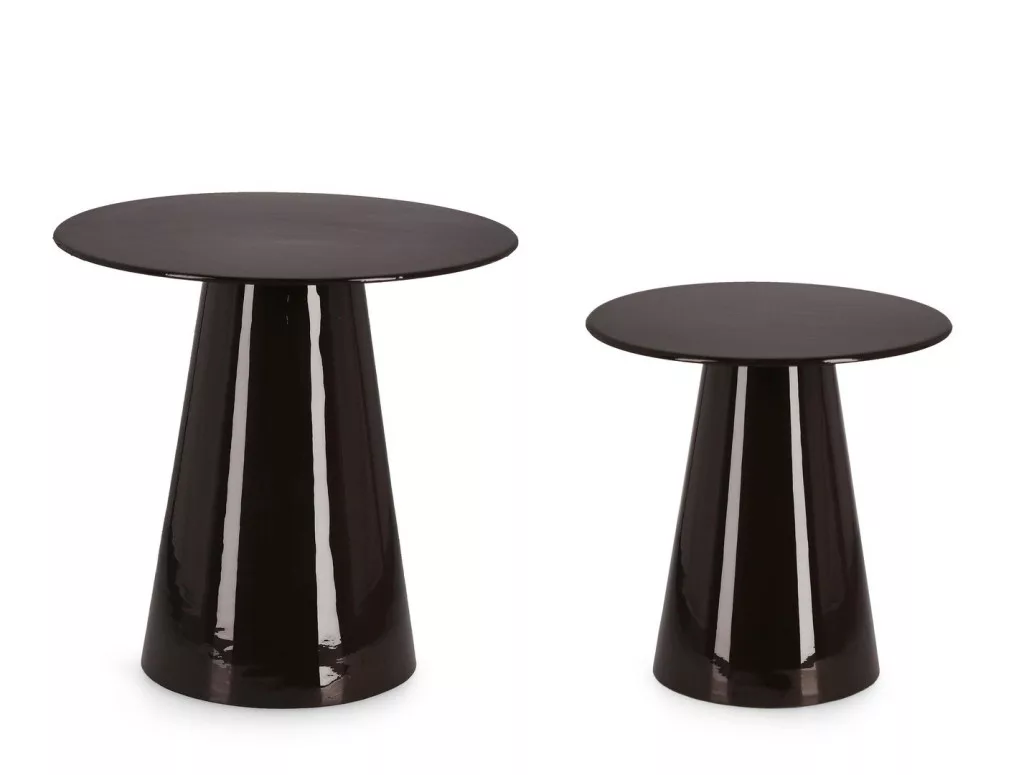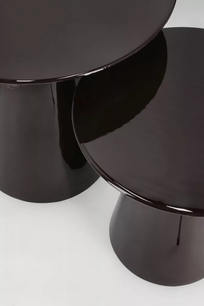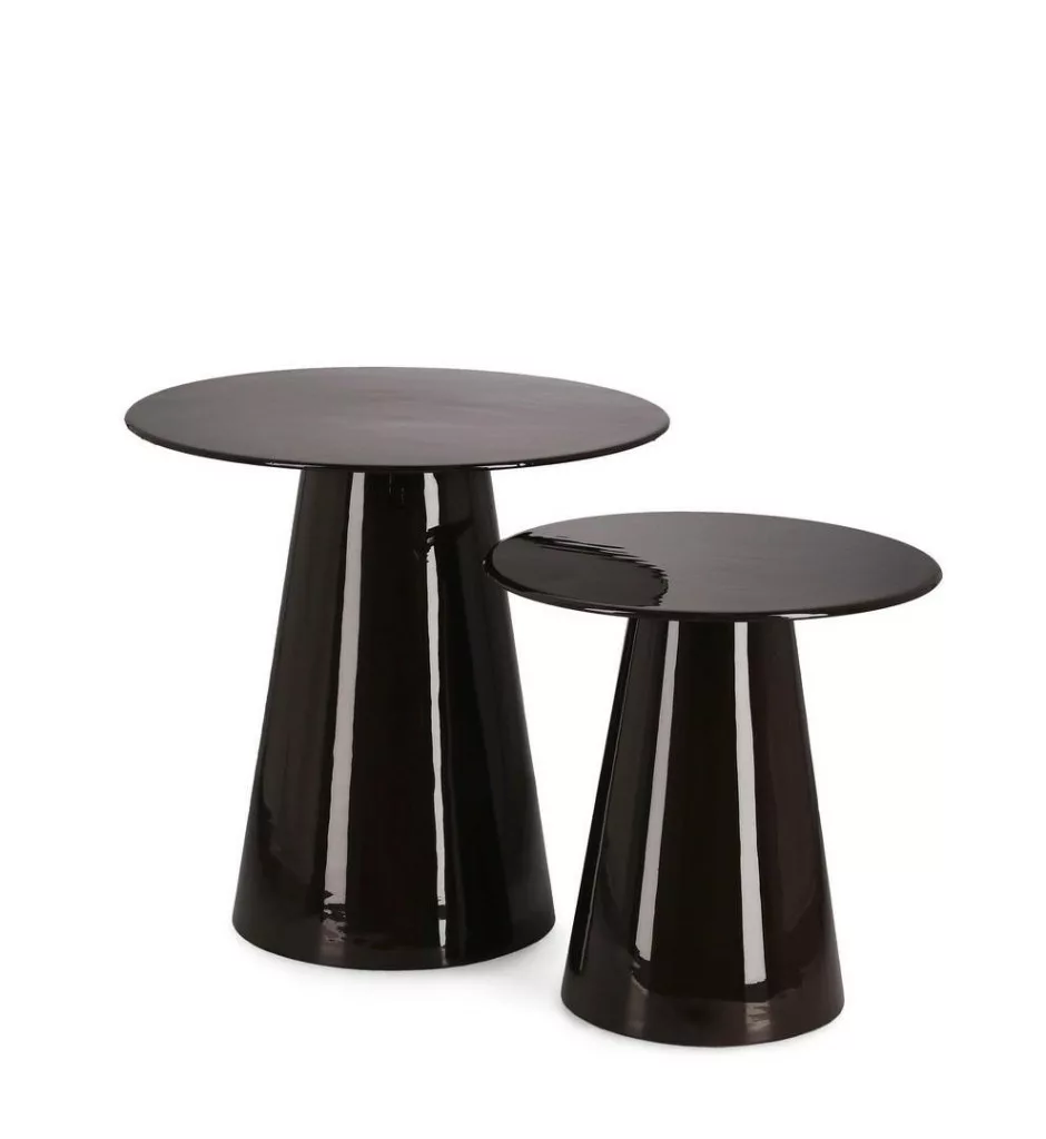 A Bizzotto Salema dohányzóasztal szett a modern design és a kifinomult elegancia megtestesítője. A kúpos alakú lábszerkezet és a kerek asztallapok harmonikus összhangja különleges megjelenést kölcsönöz a daraboknak. A fényes fekete zománcozott felület tükröződő hatása egyedi karaktert ad a bútornak.