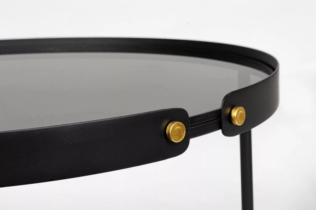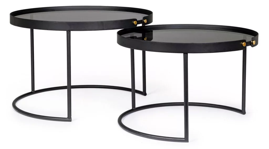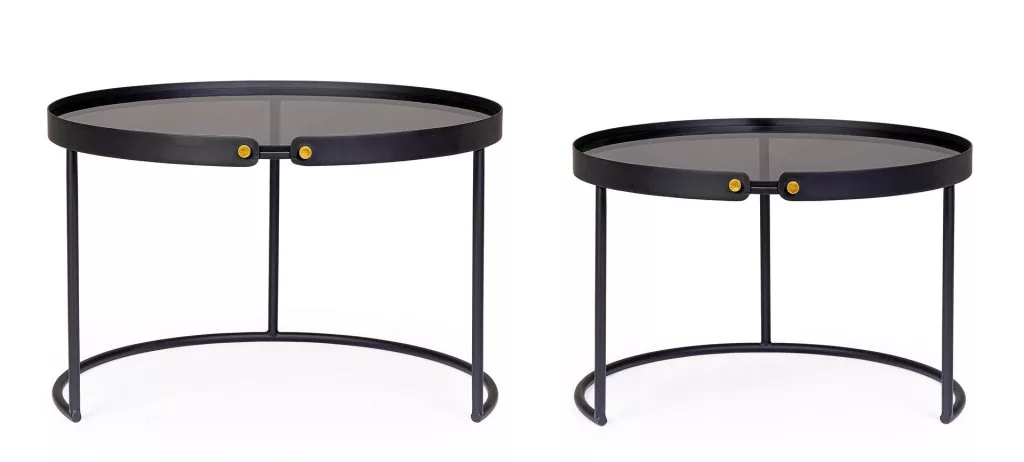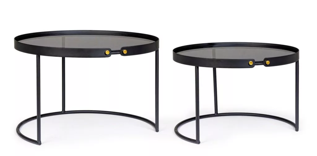 Bizzotto ZEINA ROUND Fekete Dohányzóasztal Szett Edzett Üveglappal