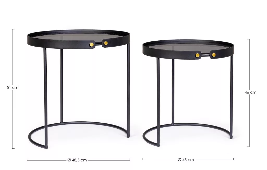 A Bizzotto Zeina Round dohányzóasztal szett tökéletes összhangot teremt a modern design és a funkcionalitás között. A porszórt acél szerkezet tartósságot és ellenállóképességet biztosít, míg az edzett üveg asztallapok elegáns, légies megjelenést kölcsönöznek a bútornak.