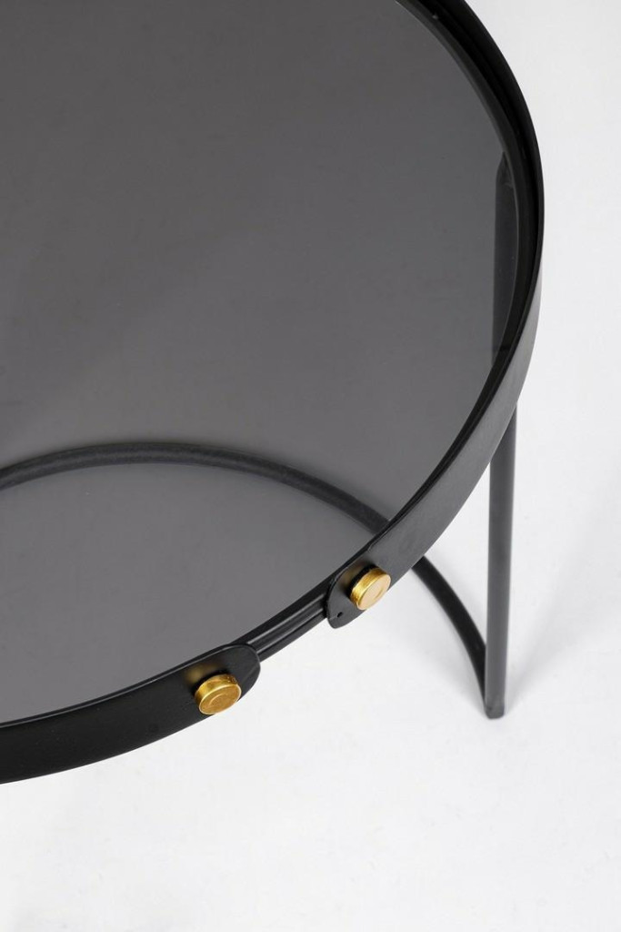 Bizzotto Zeina Round Üveglapos Dohányzóasztal Szett Fekete Arany Díszítéssel