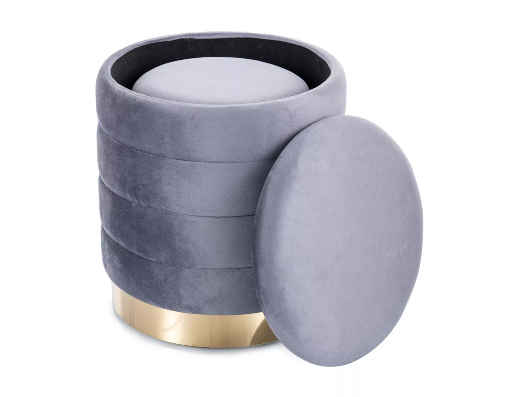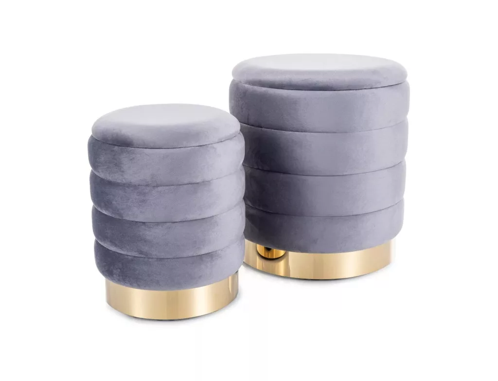 Britta Luxus Bársony Puff Szett Tárolóval Szürke