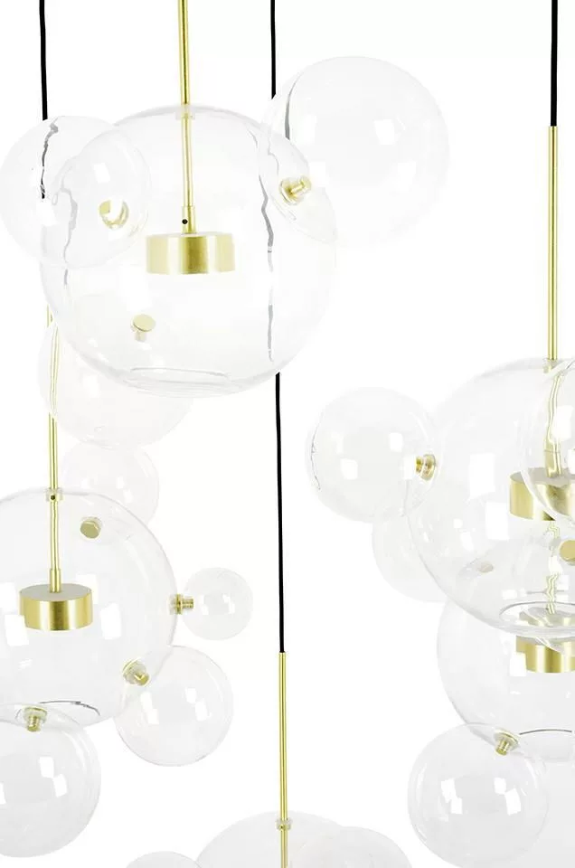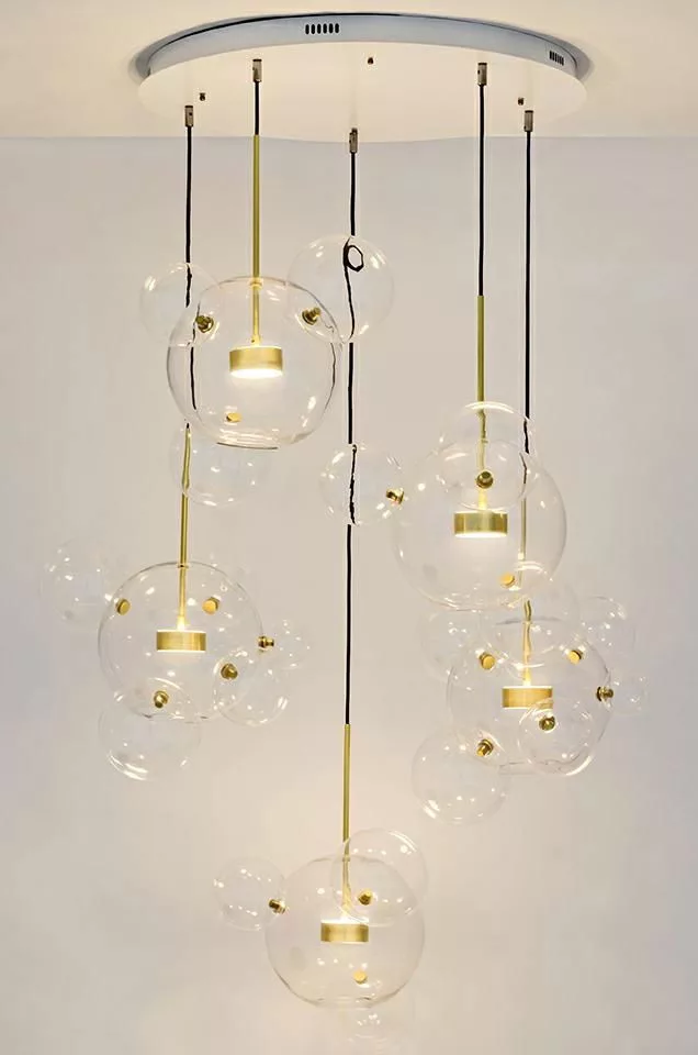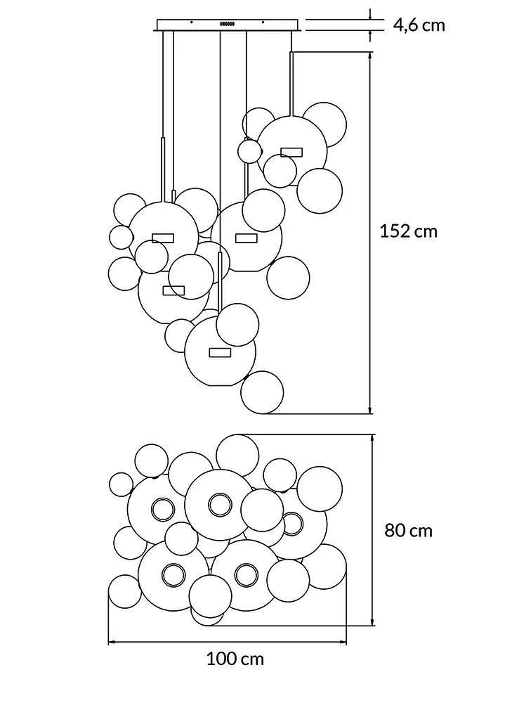 Az öt fejós gömböt egyetlen aljzatból kiinduló drótok függesztik fel.