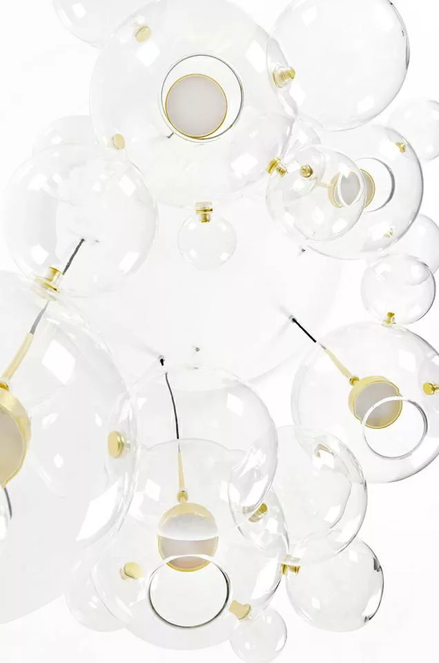 A Capri Disc 5 lámpa gömb alakú üvegárnyékolókból és eloxált alumíniumból áll.
