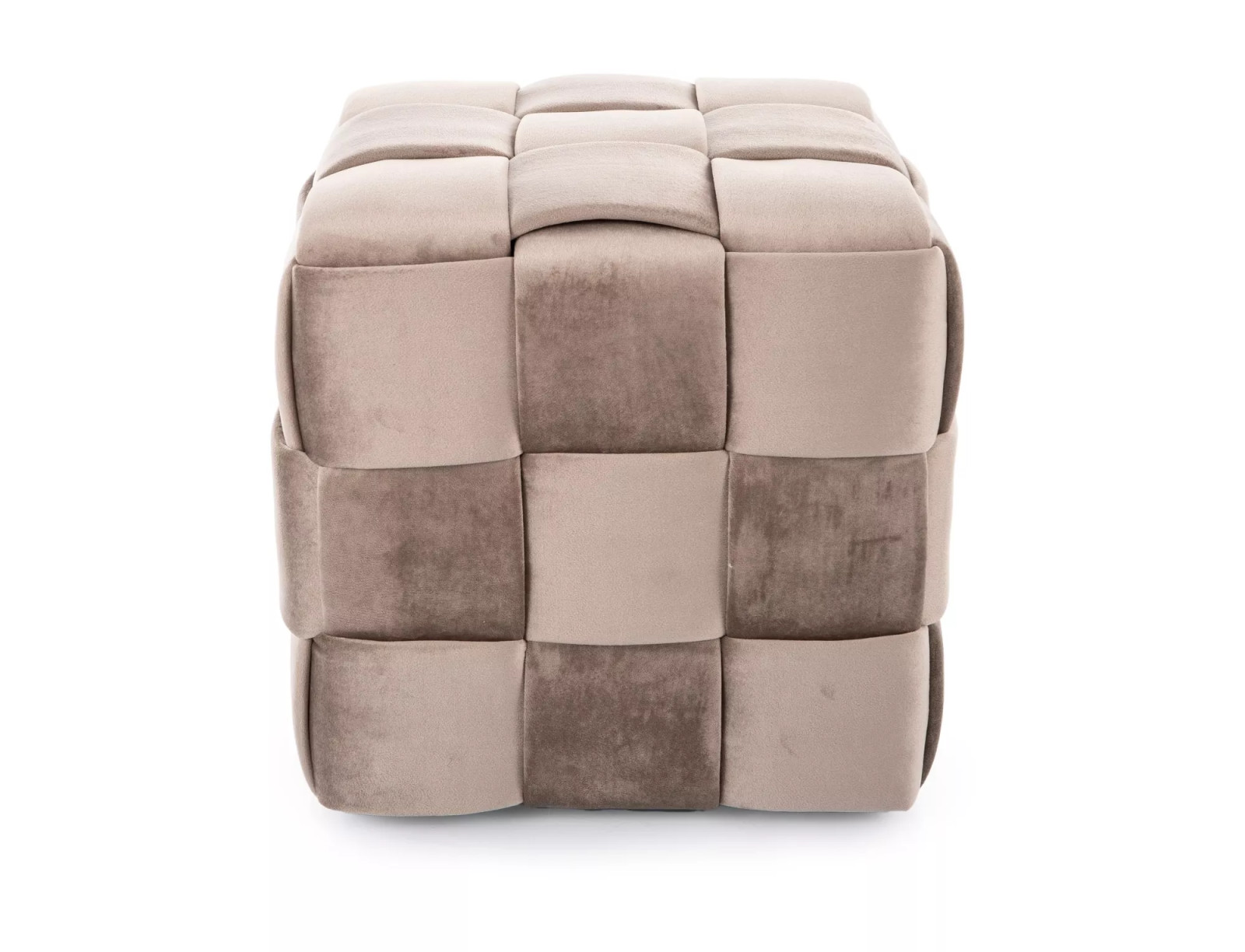 A Casel Velvet puff különleges, fonott kockamintás kialakításával és prémium bársony kárpitozásával a modern lakberendezés kiemelkedő darabja. A sötét bézs árnyalat és a puha tapintású anyag tökéletes harmóniát teremt, miközben a geometrikus mintázat egyedi karaktert kölcsönöz a bútornak.