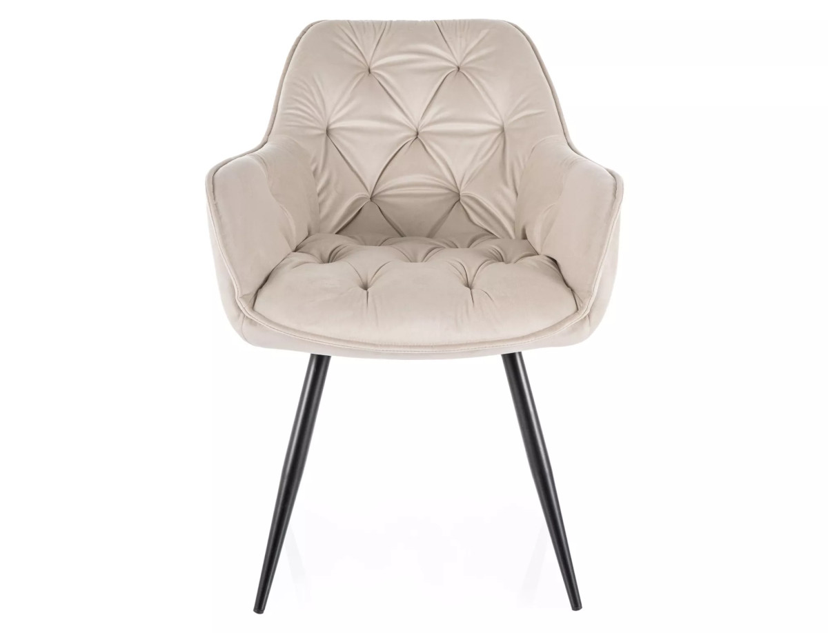 Cherry Velvet Bársony Étkezőszék Világos Bézs Fekete Fém Lábakkal