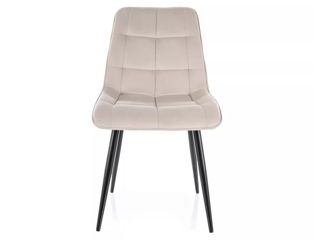 A Chic Velvet étkezőszék a modern otthonok elegáns kiegészítője, amely ötvözi a kényelmet és a kifinomult megjelenést. A világos bézs színű, puha bársony kárpitozás és a geometrikus steppelt háttámla különleges megjelenést kölcsönöz a széknek.