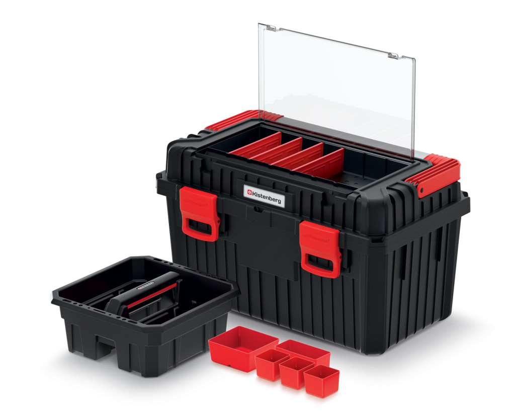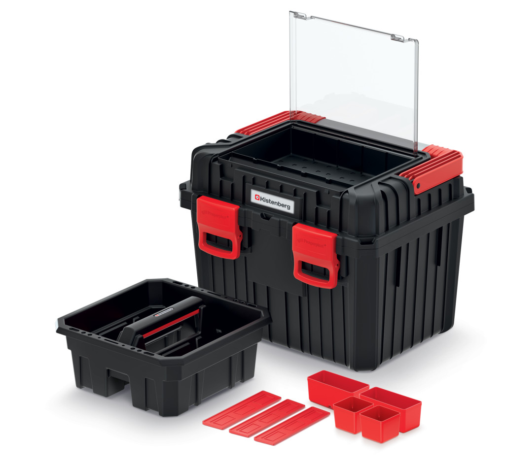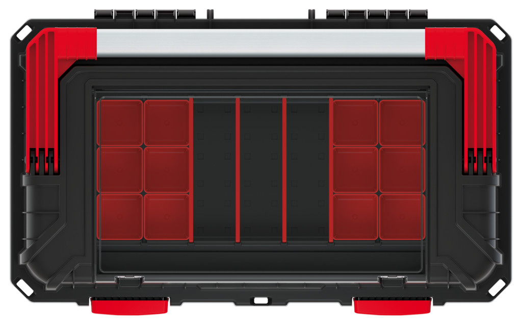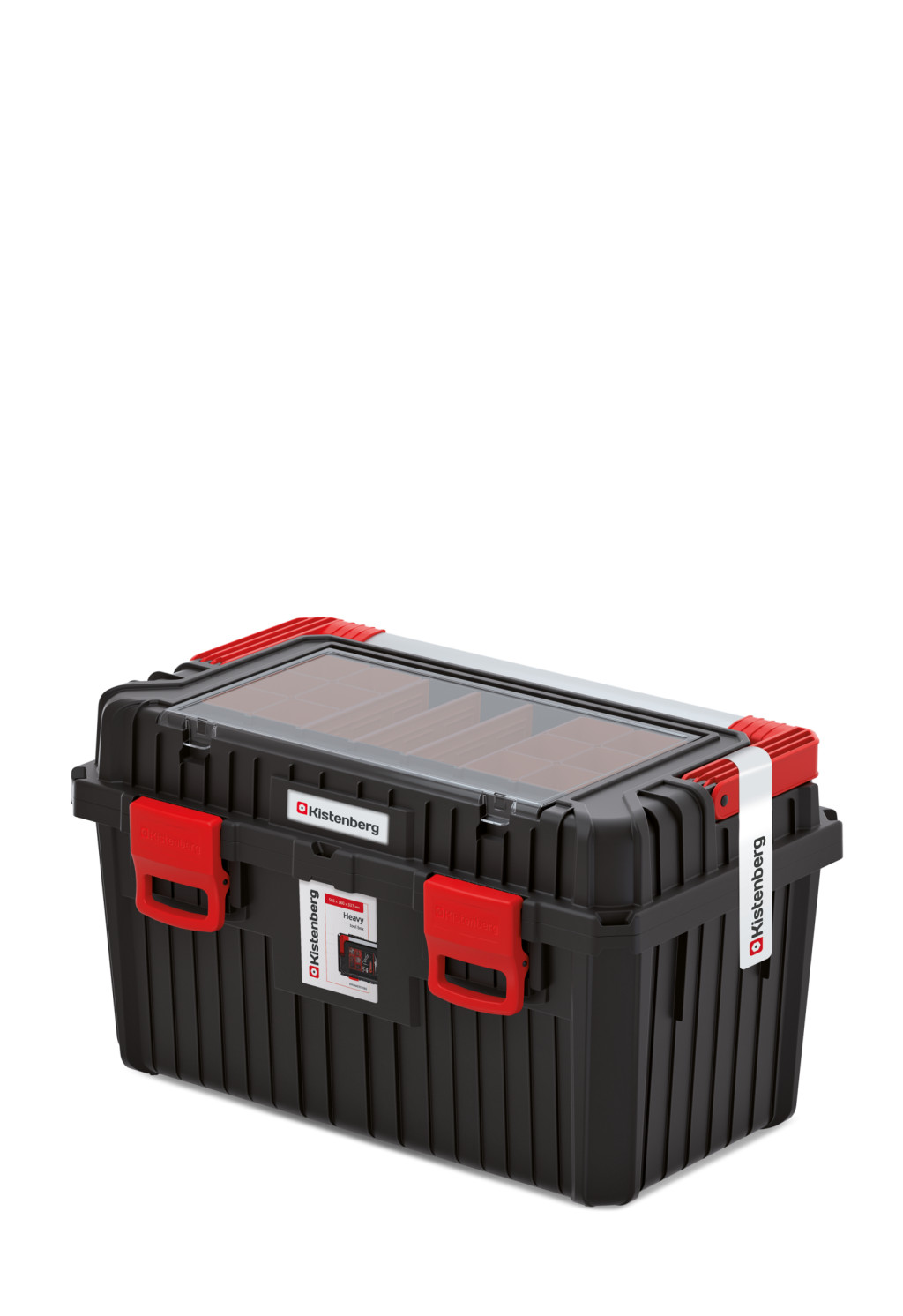 A Heavy 60 szerszámosláda egyesíti a robusztus kialakítást a praktikus funkcionalitással. A megerősített polimer konstrukció és az alumínium fogantyú biztosítja a tartósságot, míg a beépített rendszerező elemek maximális szervezettséget kínálnak. A fedélben található átlátszó polikarbonát rendszerező 4 rekesszel és 5 kivehető tárolóval rendelkezik.
