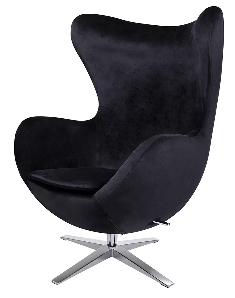 A King Home Egg széles fotel egy klasszikus dizájn modern újraértelmezése. A fekete velúr kárpitozás és a polírozott acél talp tökéletes összhangot teremt a luxus és a funkcionalitás között. A szék különleges, ölelő formája teljes támasztást nyújt a testnek, miközben szemet gyönyörködtető látványt nyújt.