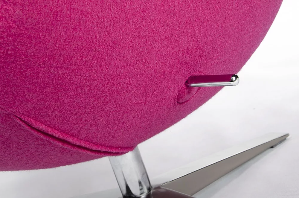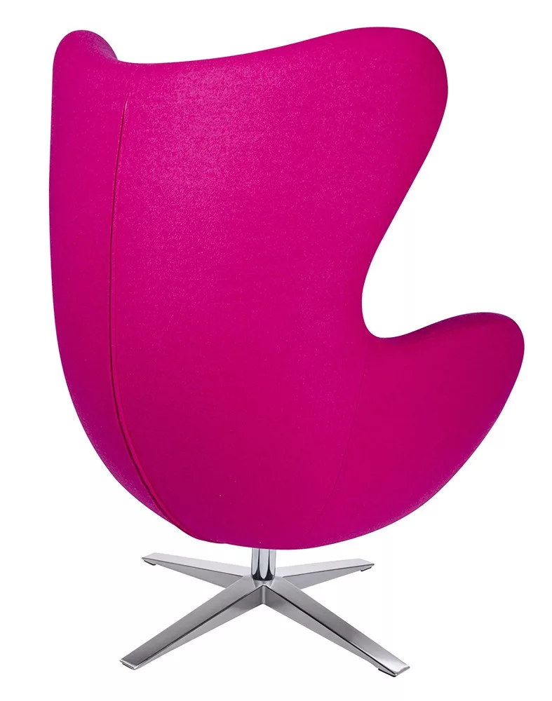 A King Home Egg széles fotel a legendás design újragondolása, amely ötvözi a klasszikus formát a modern funkcionalitással. A fukszia színű kasmír gyapjú kárpitozás és a polírozott acél talp elegáns kontrasztot alkot, míg a széles, ölelő forma maximális kényelmet biztosít.