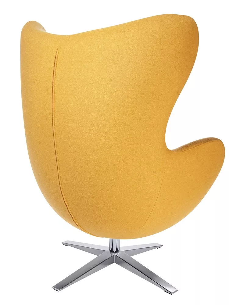 Ikonikus formatervezésű, mustársárga kasmír fotel forgatható és dönthető funkcióval, amely tökéletes választás a modern és stílusos otthonokba.