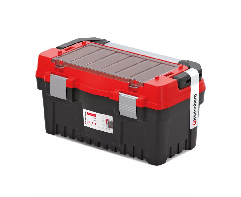 Az EVO 50 szerszámosláda ötvözi a praktikusságot és a tartósságot. A nagy teherbírású polimer házszerkezet és az alumínium elemek biztosítják a hosszú élettartamot, míg az átlátszó polikarbonát fedéllel ellátott beépített szervező rendszer tökéletes áttekinthetőséget nyújt.