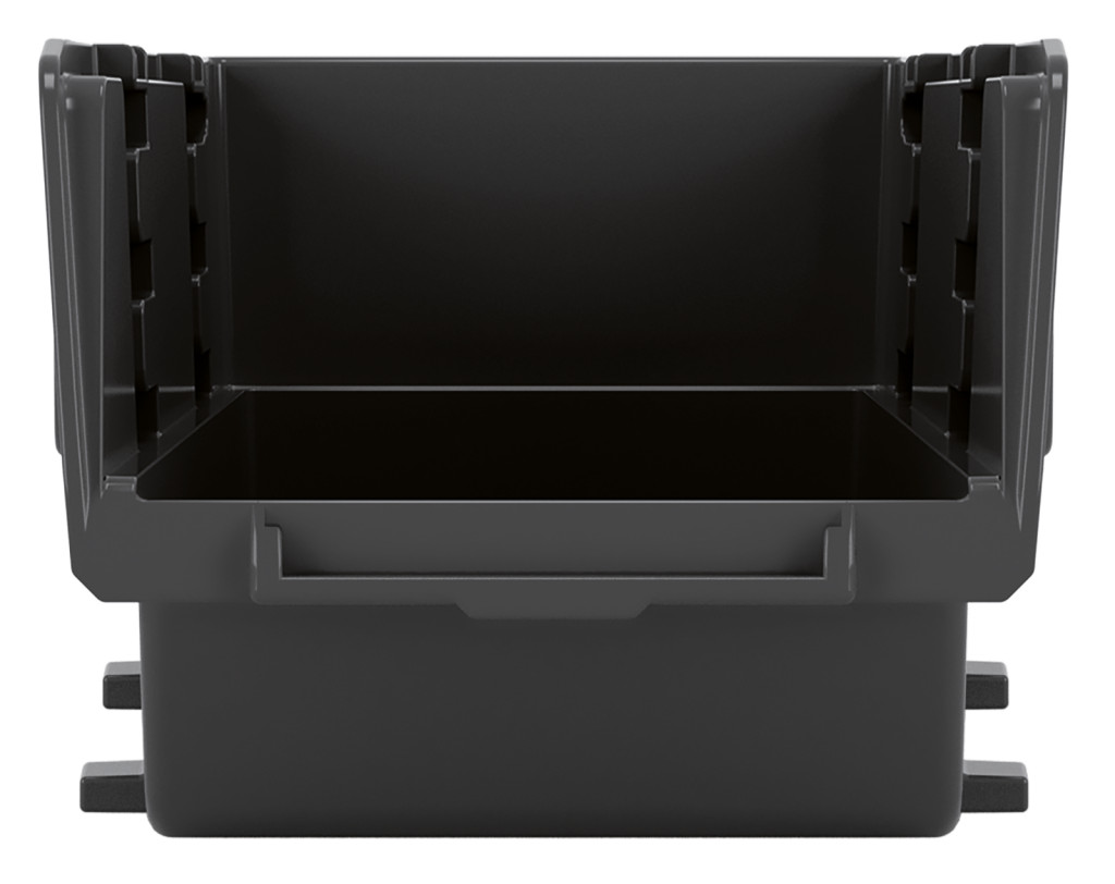 Kompakt, strapabíró műhelyi tárolódoboz négy szinten egymásra építhető kivitelben, falra szerelhető opcióval.