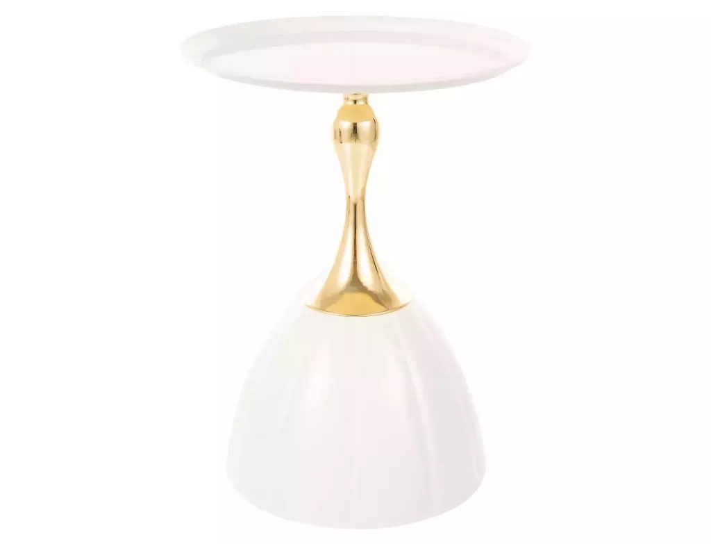 Elegáns Kerek Fém Dohányzóasztal Fehér-Arany